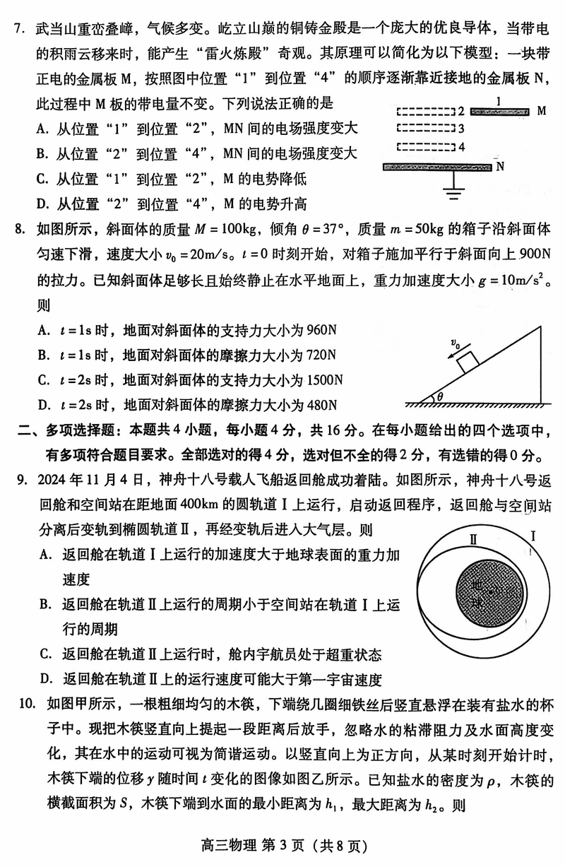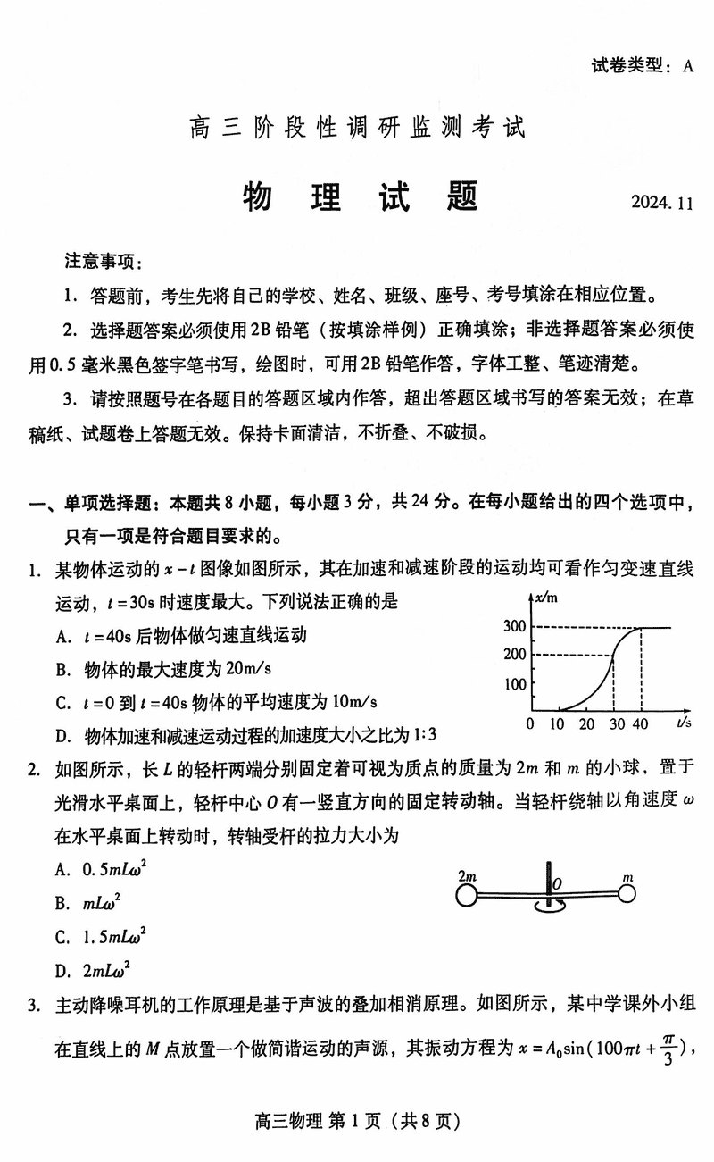 山东潍坊2024-2025学年高三上学期11月期中物理试题及答案