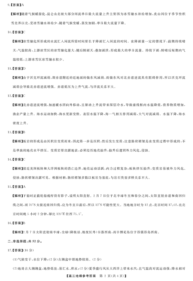 地理试题及答案解析