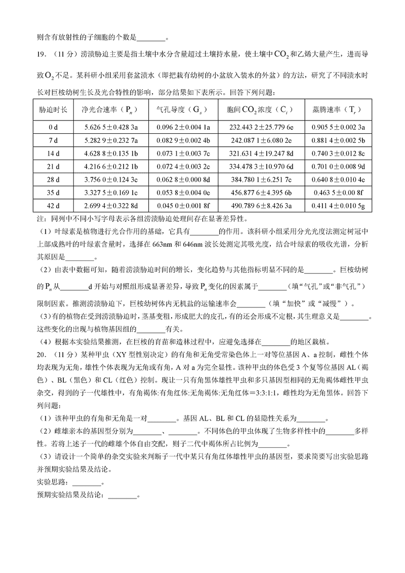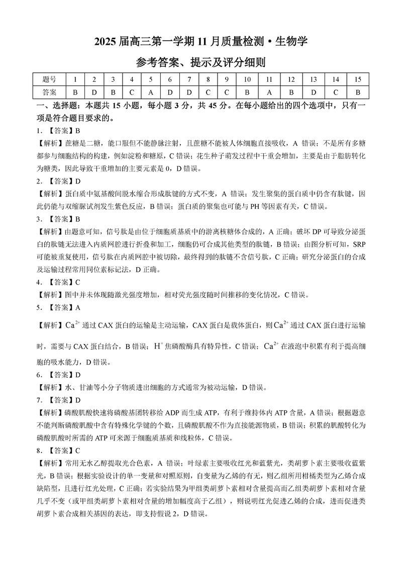 河南部分示范性高中2024年11月高三上期中生物试题及答案