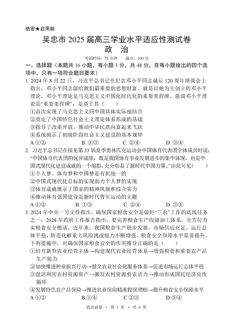 宁夏吴忠市2025届高三上学期学业水平适应性测试政治考试已于近日开考,为方便考生考后及时查看考试情况,查漏补缺、弥补不足,本文整理了试题答案解析相关信息!