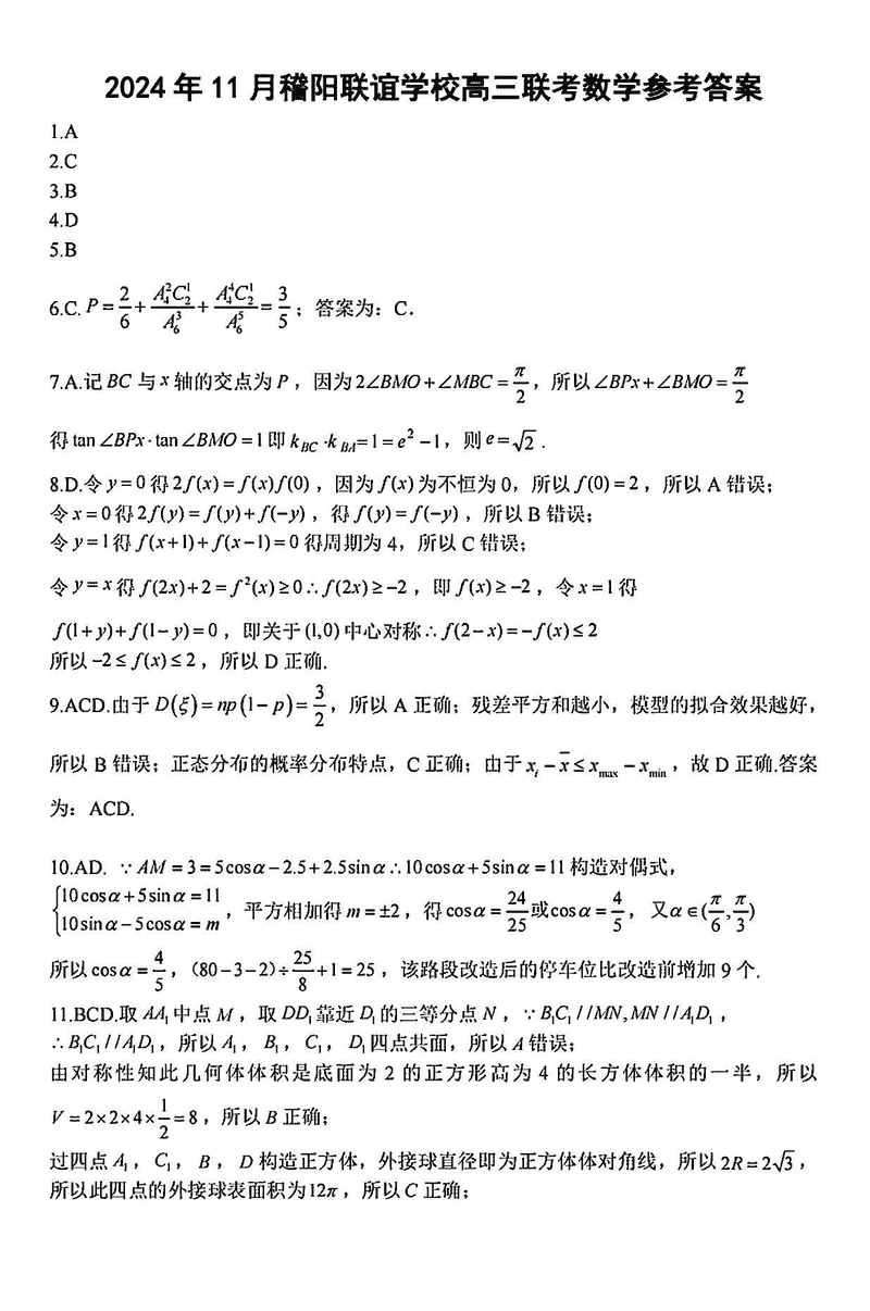 浙江稽阳联谊学校2024年11月高三上学期联考数学考试已于近日开考,为方便考生考后及时查看考试情况,查漏补缺、弥补不足,本文整理了试题答案解析相关信息!