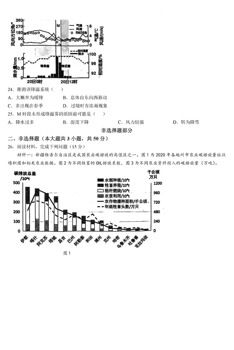 浙江稽阳联谊学校2024年11月高三上学期联考地理试题及答案