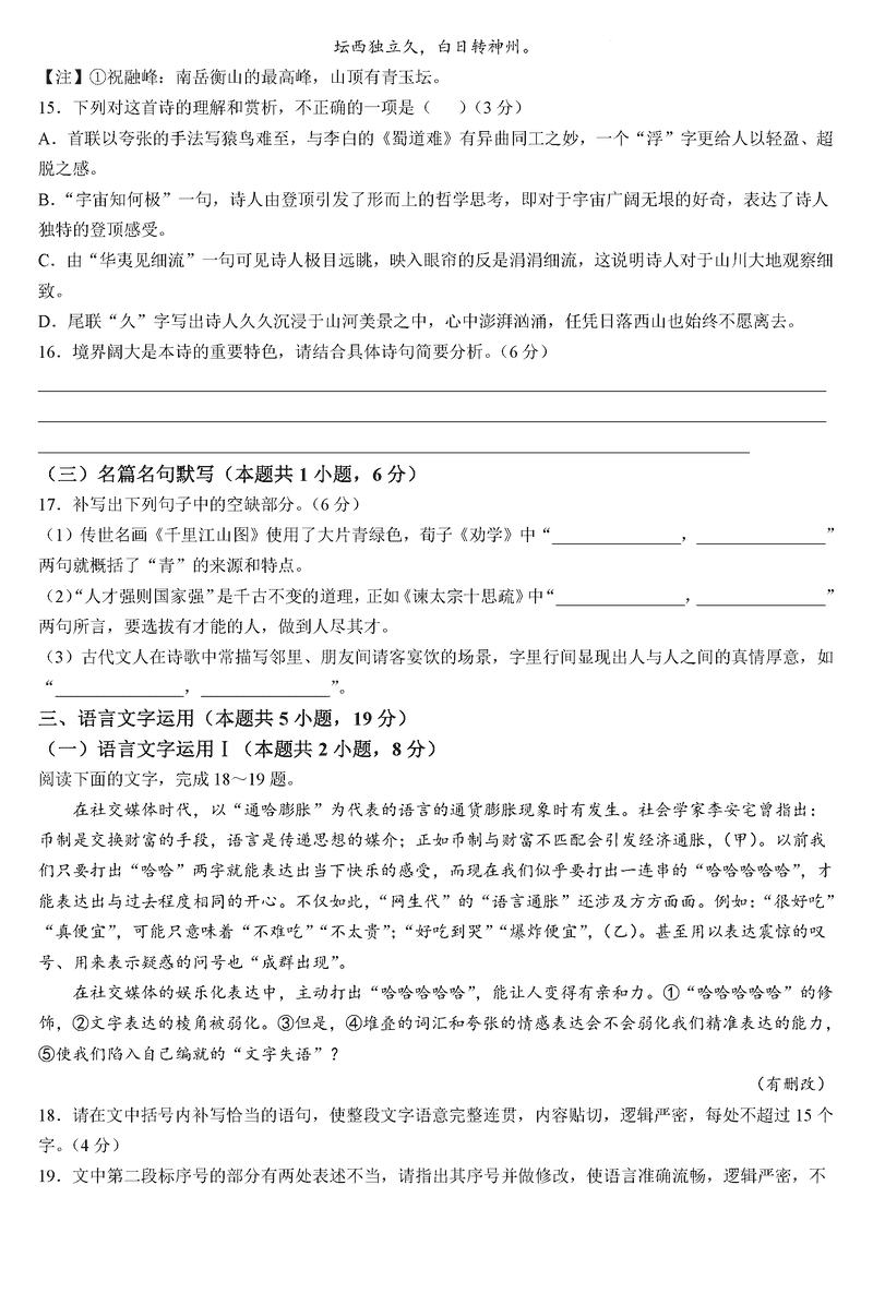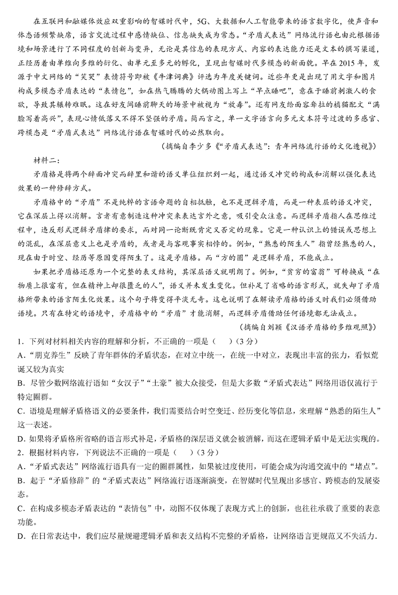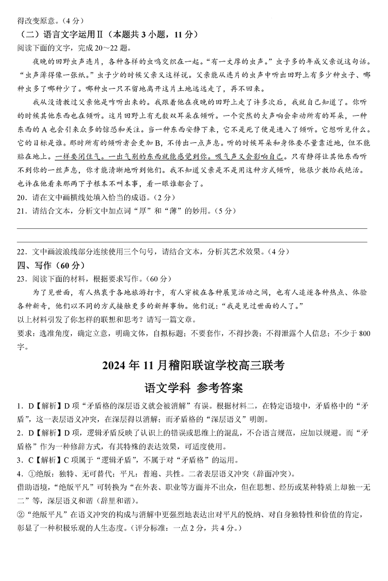 浙江稽阳联谊学校2024年11月高三上学期联考语文试题及答案