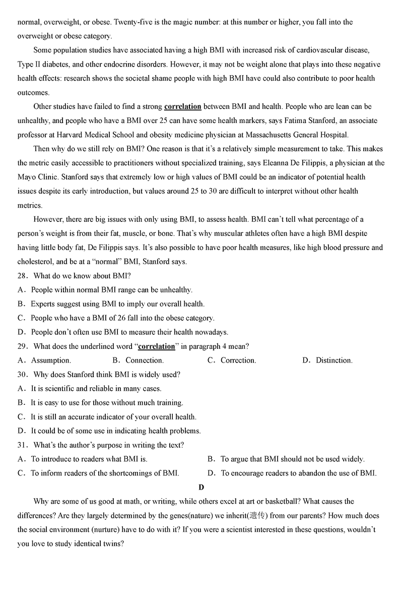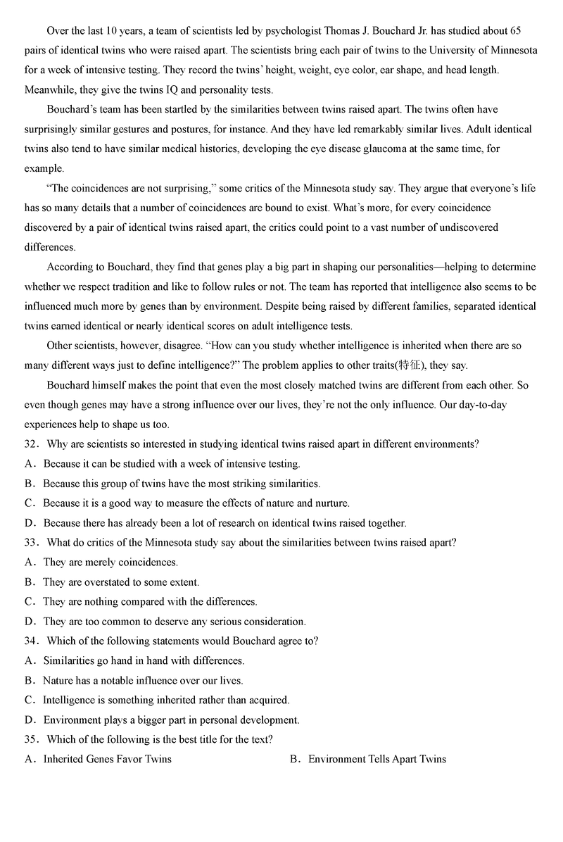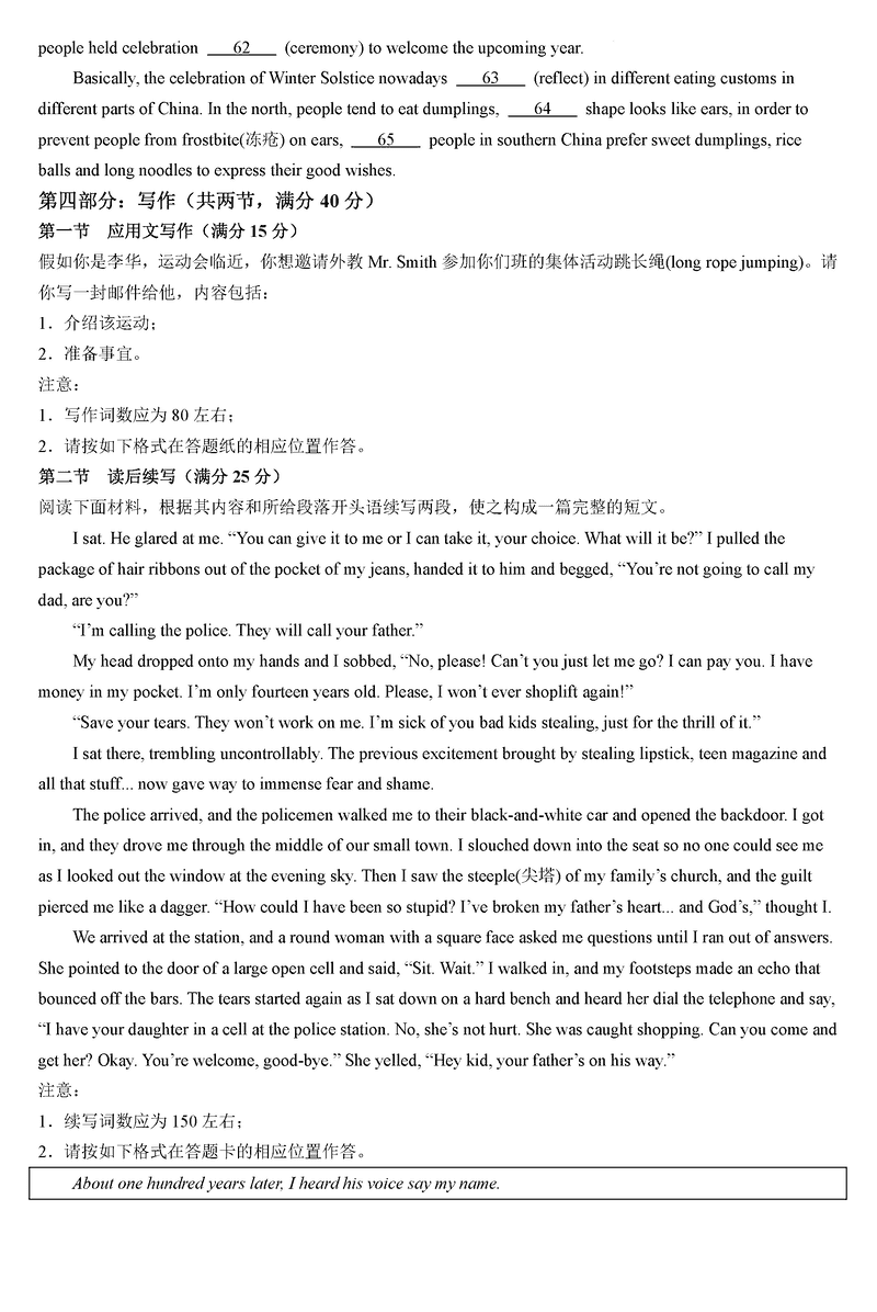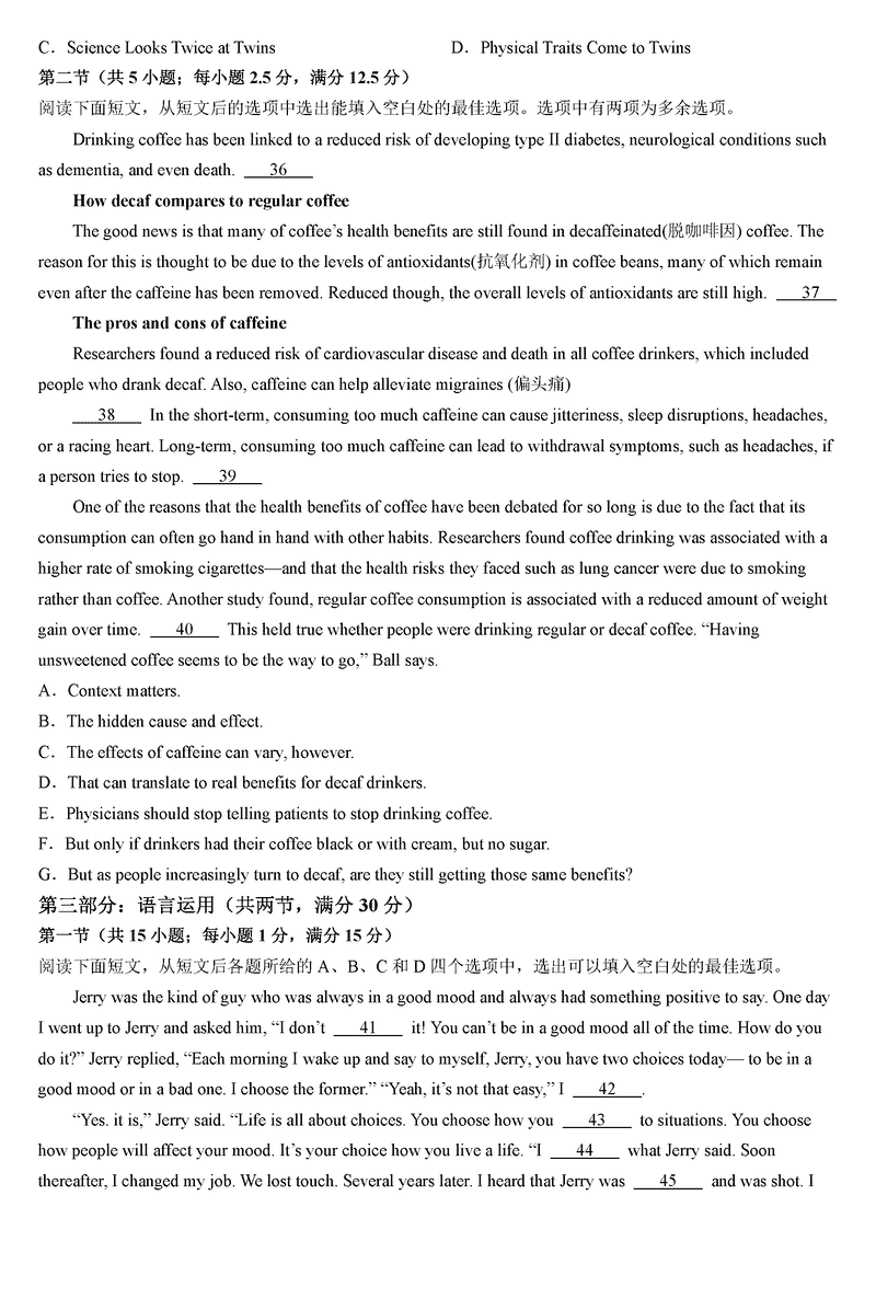 浙江稽阳联谊学校2024年11月高三上学期联考英语试题及答案