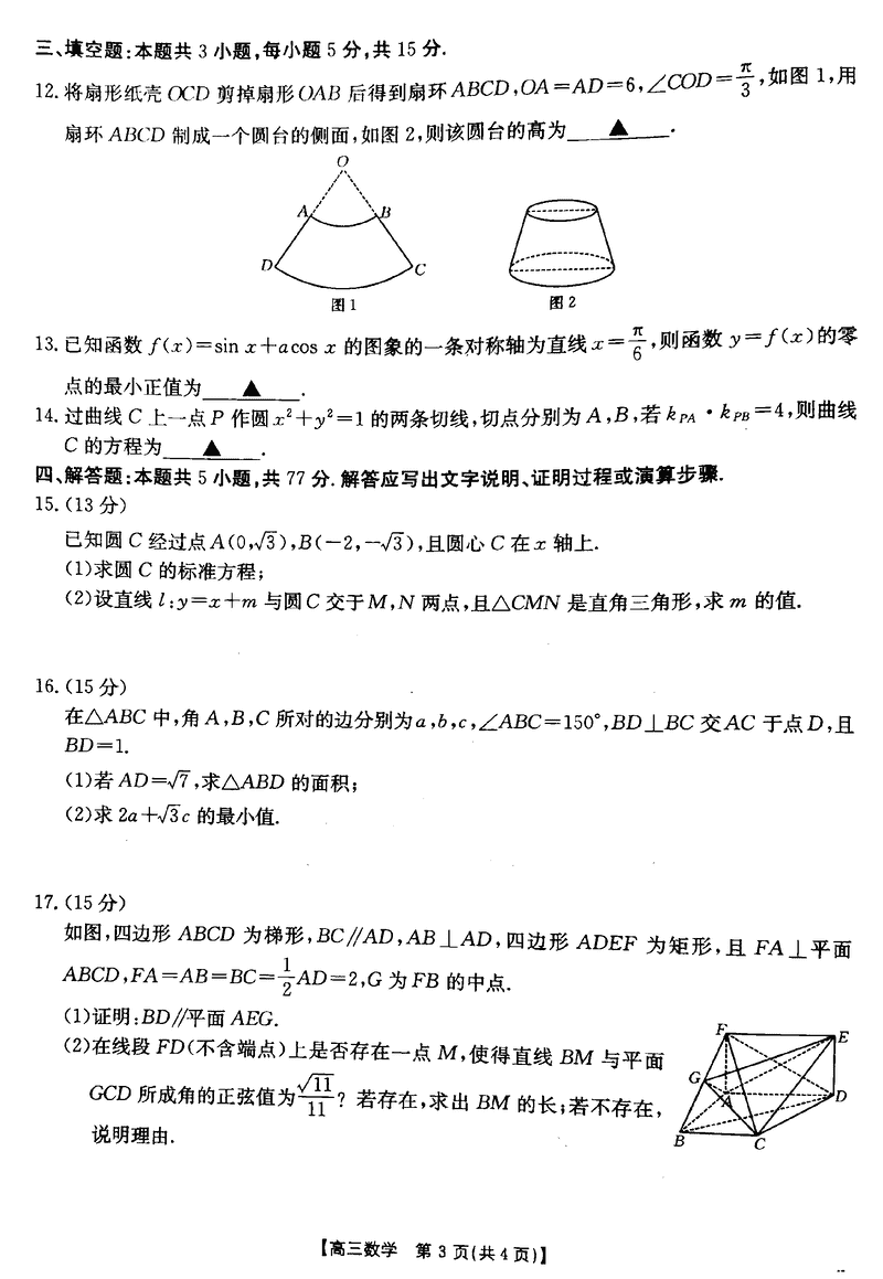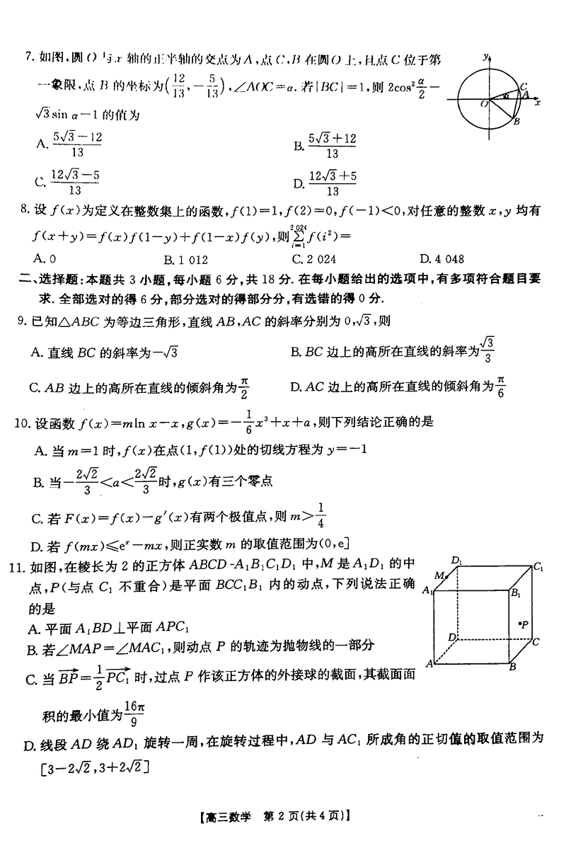 河北承德2024-2025学年高三上学期期中数学试题及答案