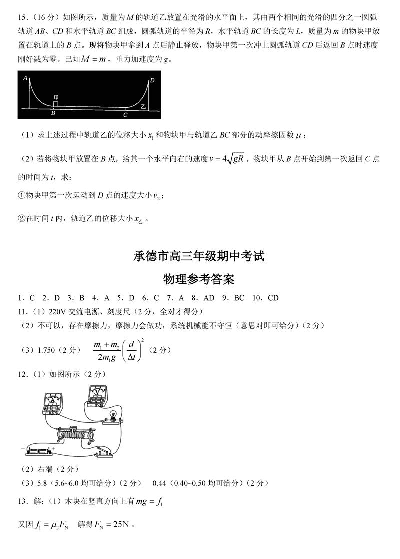 河北承德2024-2025学年高三上学期期中物理考试已于近日开考,为方便考生考后及时查看考试情况,查漏补缺、弥补不足,本文整理了试题答案解析相关信息!