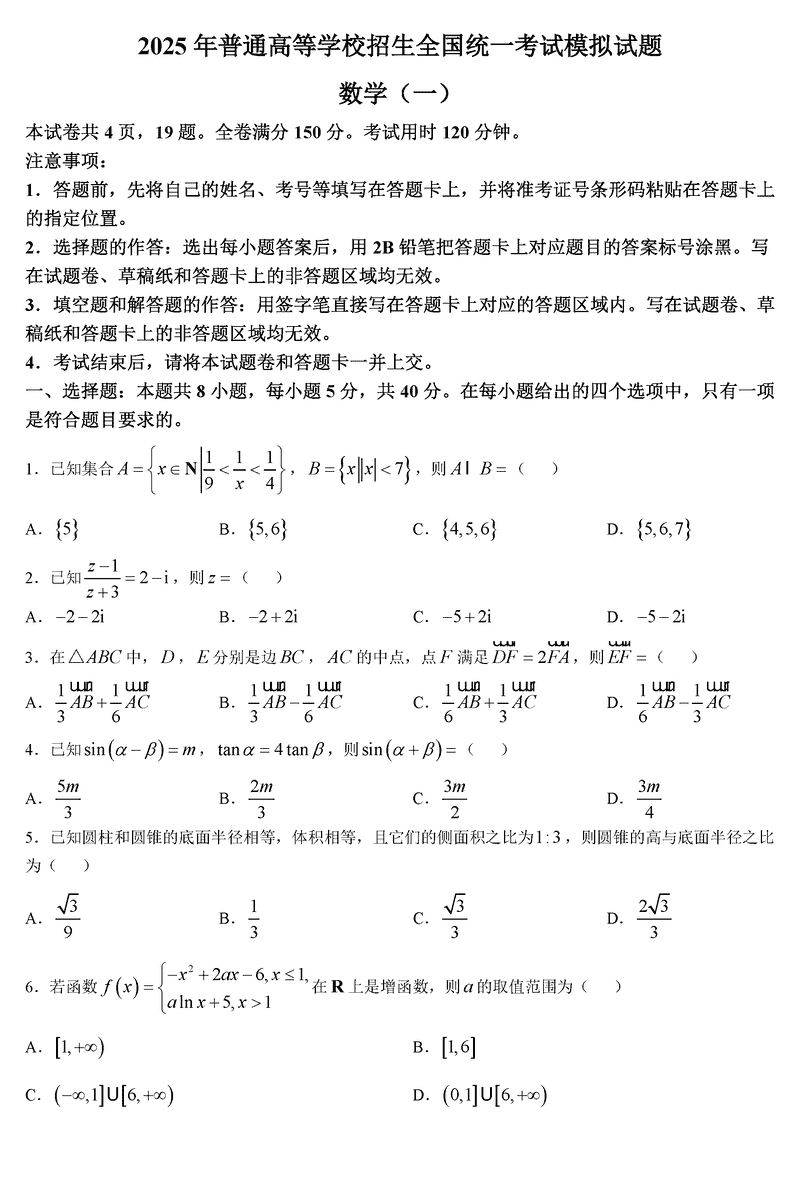 数学试题及答案解析