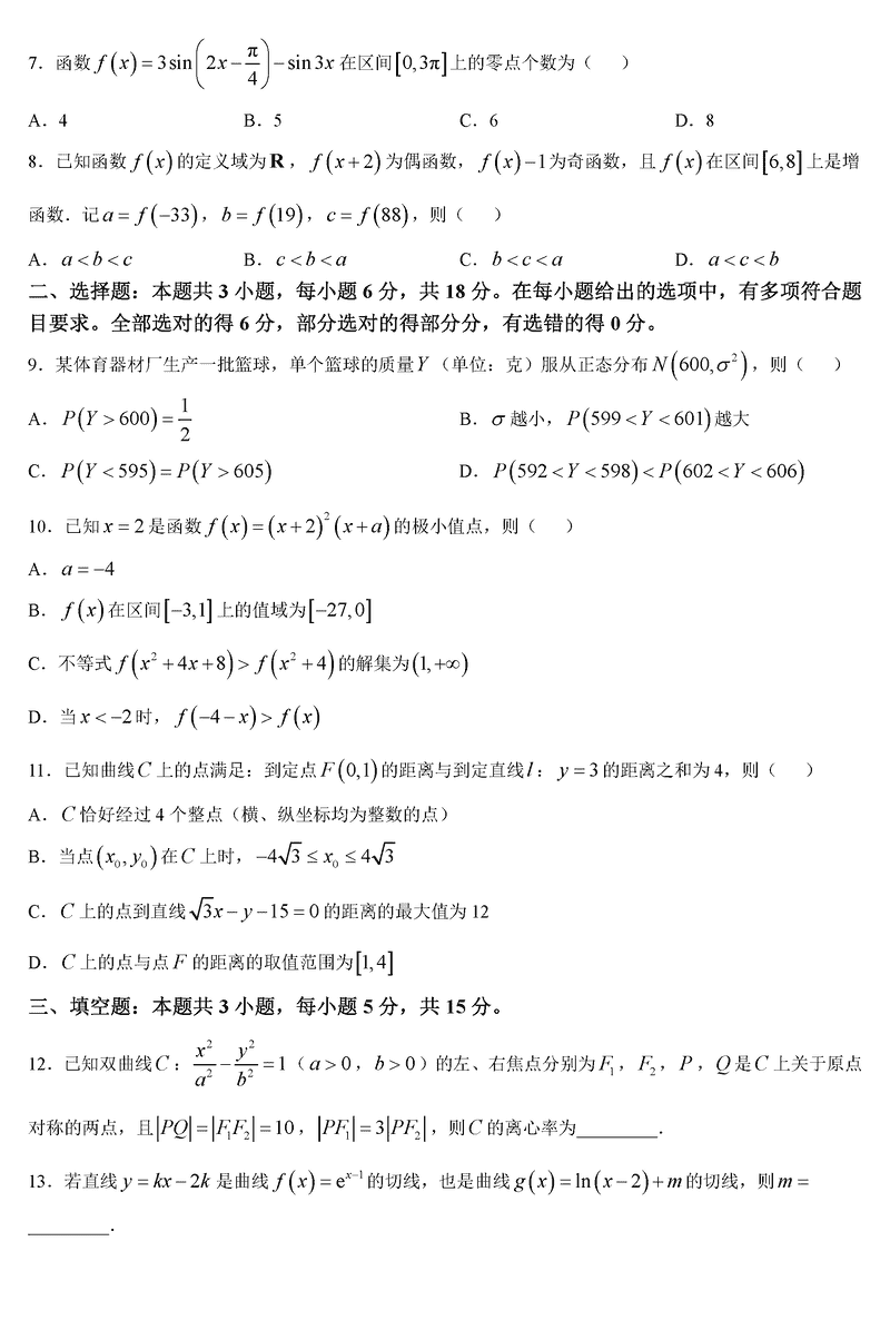 沧州市三校联考2025届高三上学期11月期中数学试题及答案