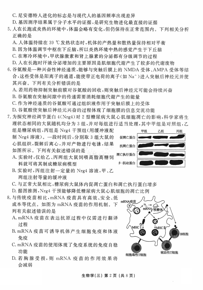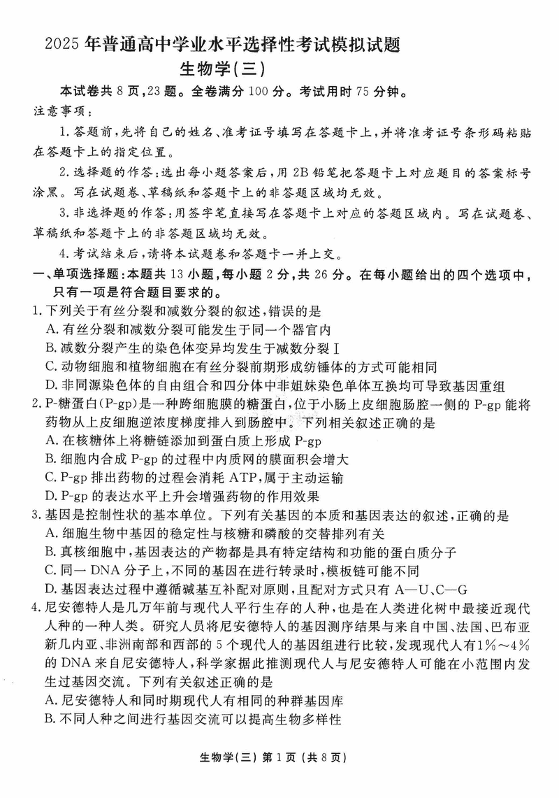 沧州市三校联考2025届高三上学期11月期中生物试题及答案