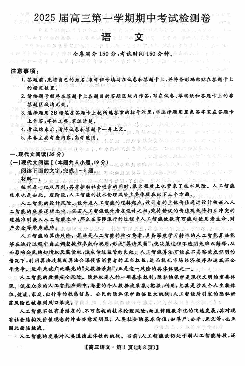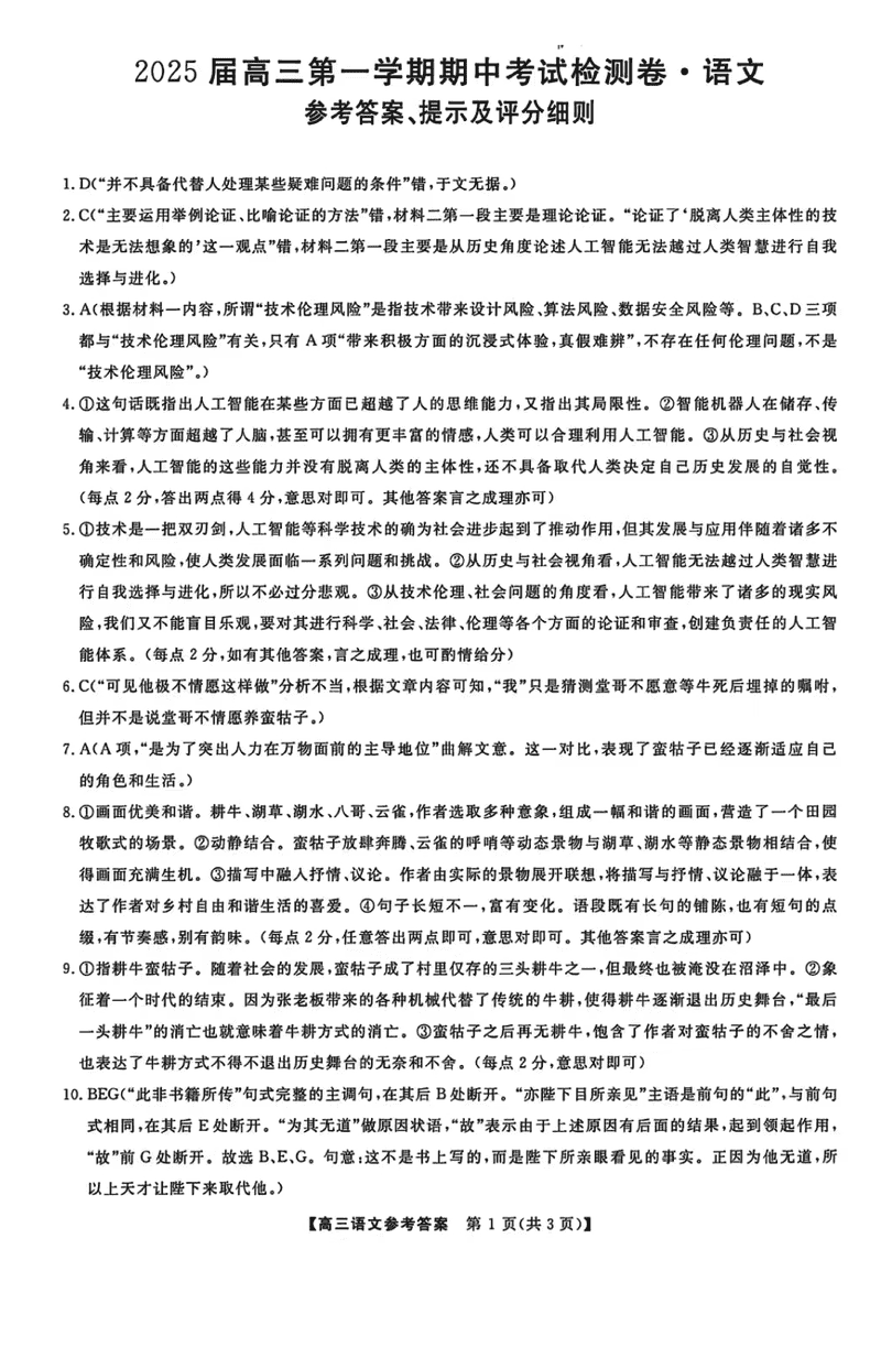 沧州市三校联考2025届高三上学期11月期中语文考试已于近日开考,为方便考生考后及时查看考试情况,查漏补缺、弥补不足,本文整理了试题答案解析相关信息!