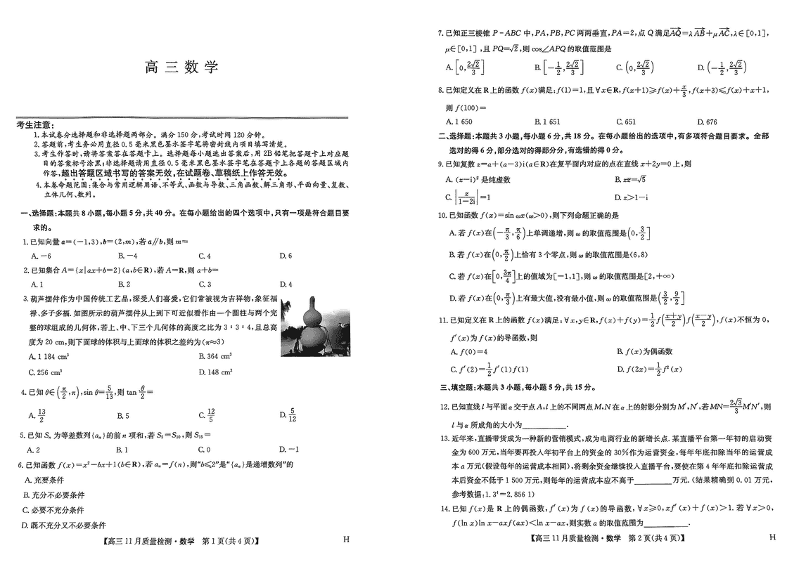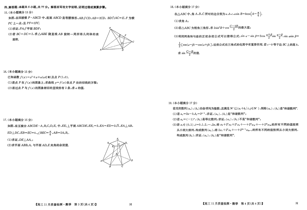 九师联盟2025届高三上学期11月联考数学试题及答案 时间:2024-11-29 16:31 数学试题 九师联盟2025届高三上学期11月联考数学考试已于近日开考,为方便考生考后及时查看考试情况,查漏补缺、弥补不足,本文整理了试题答案解析相关信息! 汇总:九师联盟2025届高三上学期11月联考试题及答案汇总 数学试题及答案解析