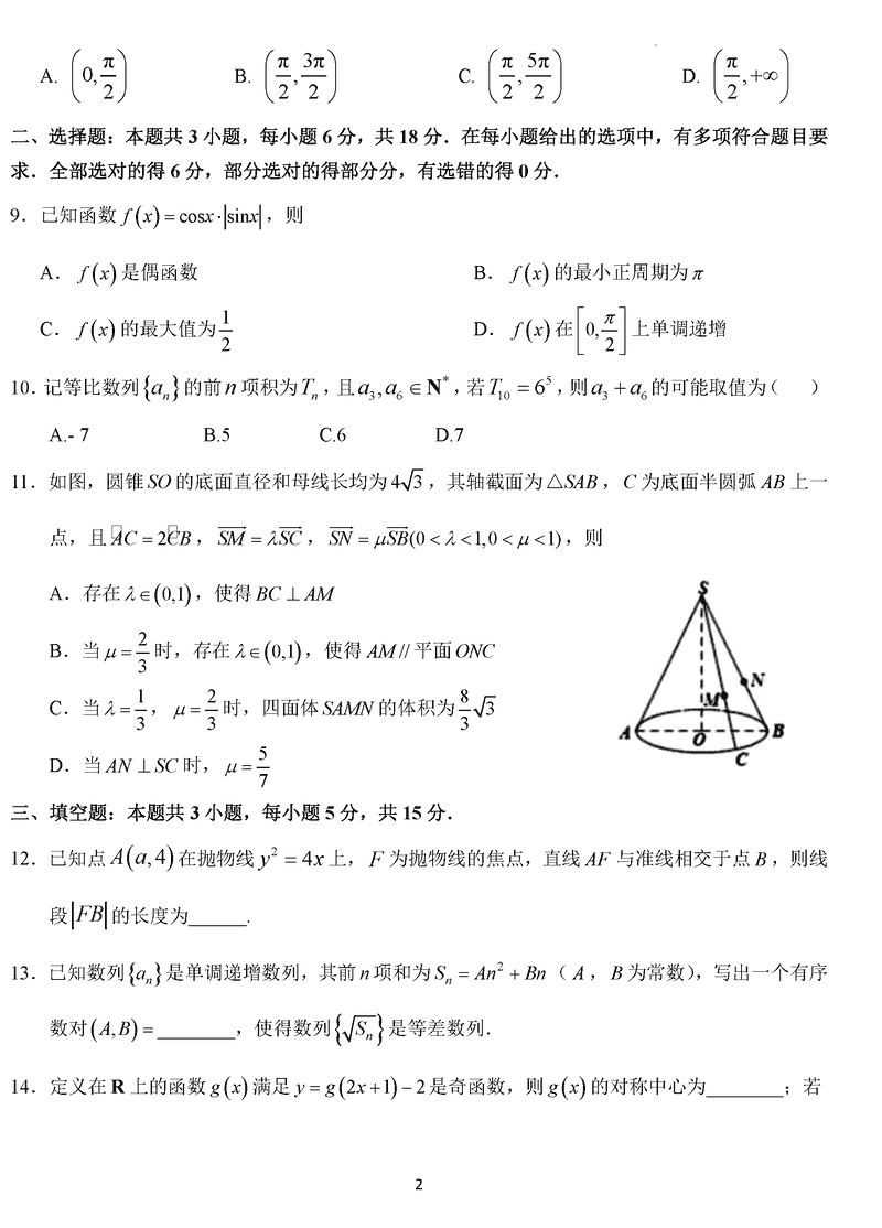 2025届湖北沙市中学高三11月月考数学试题及答案