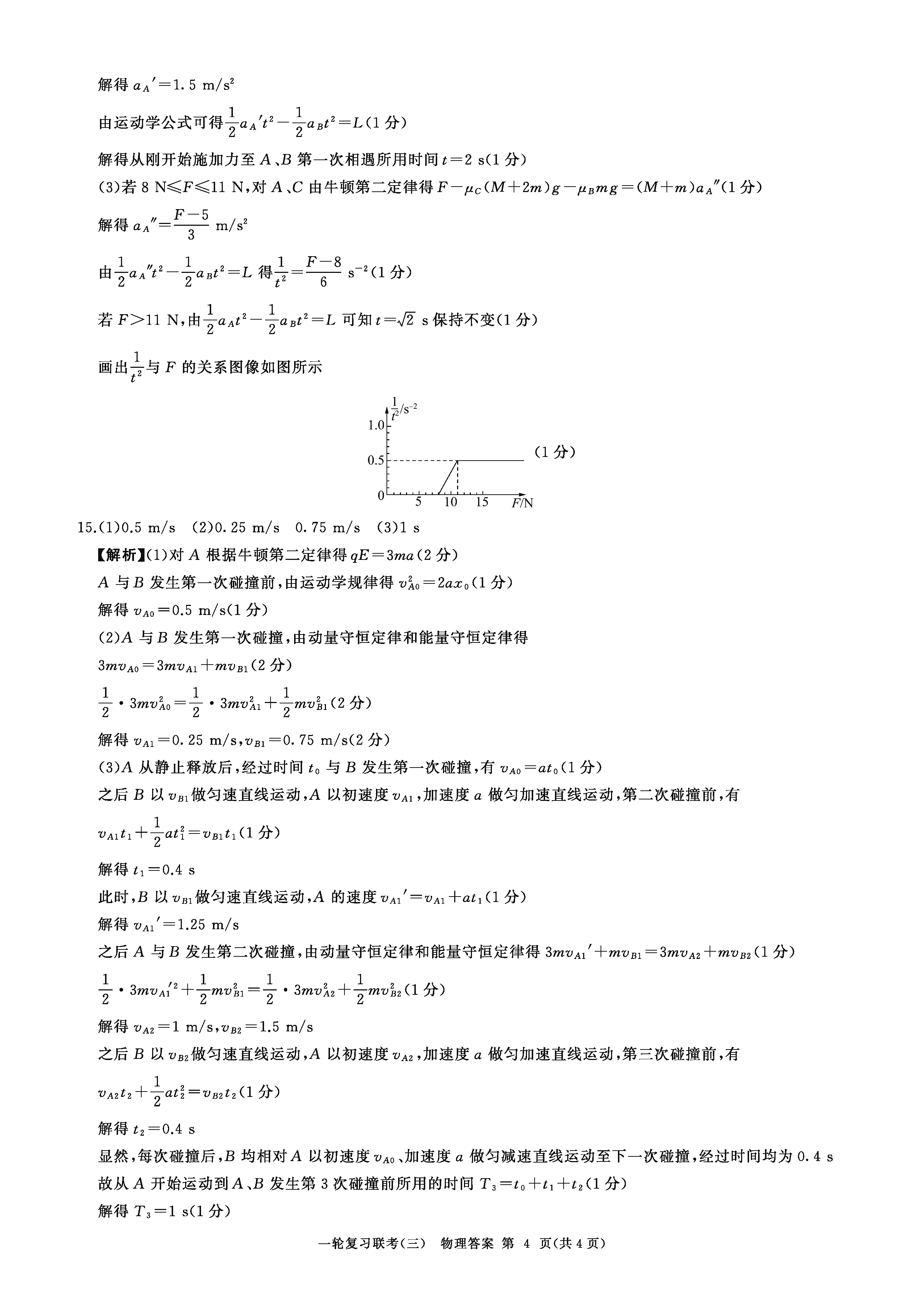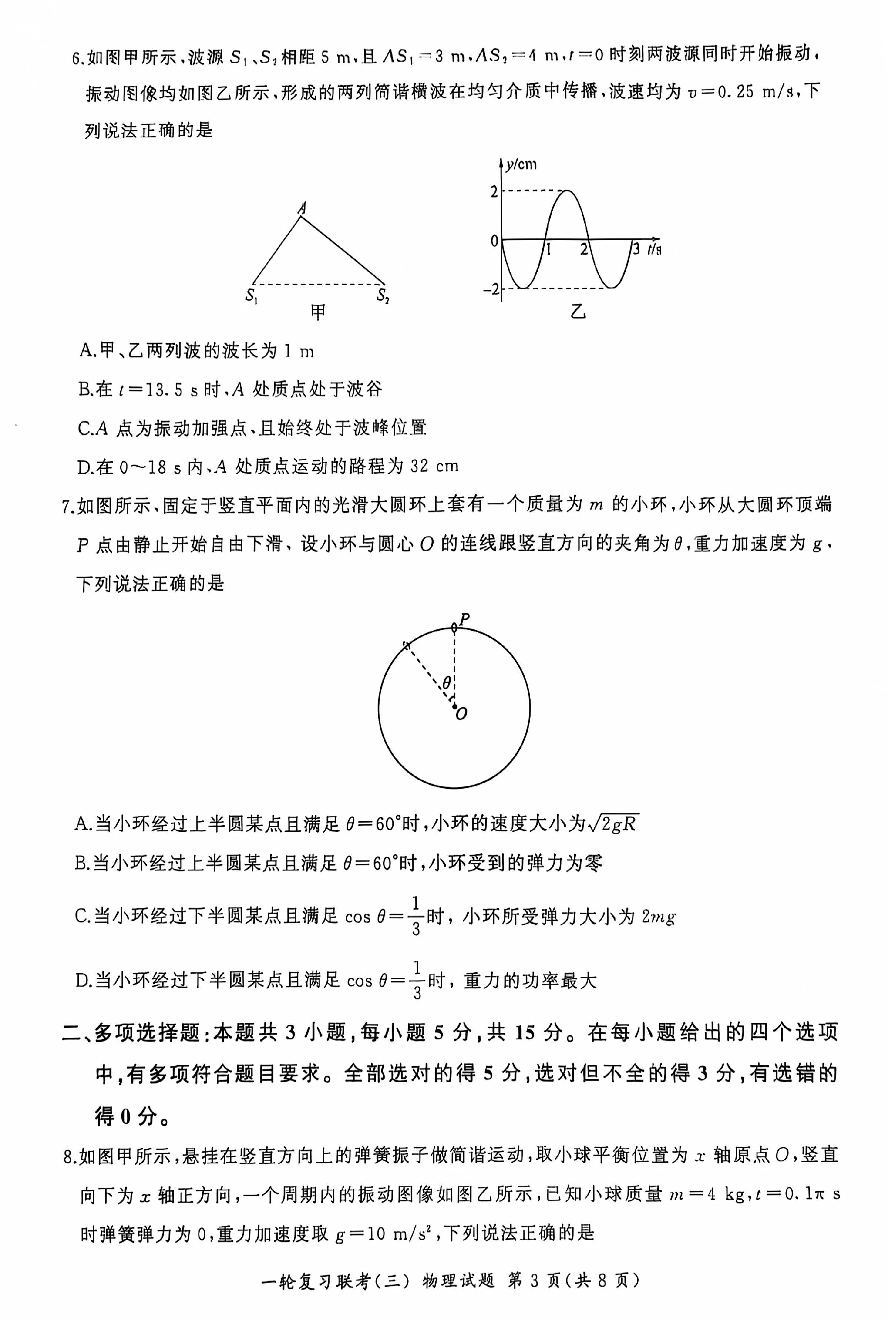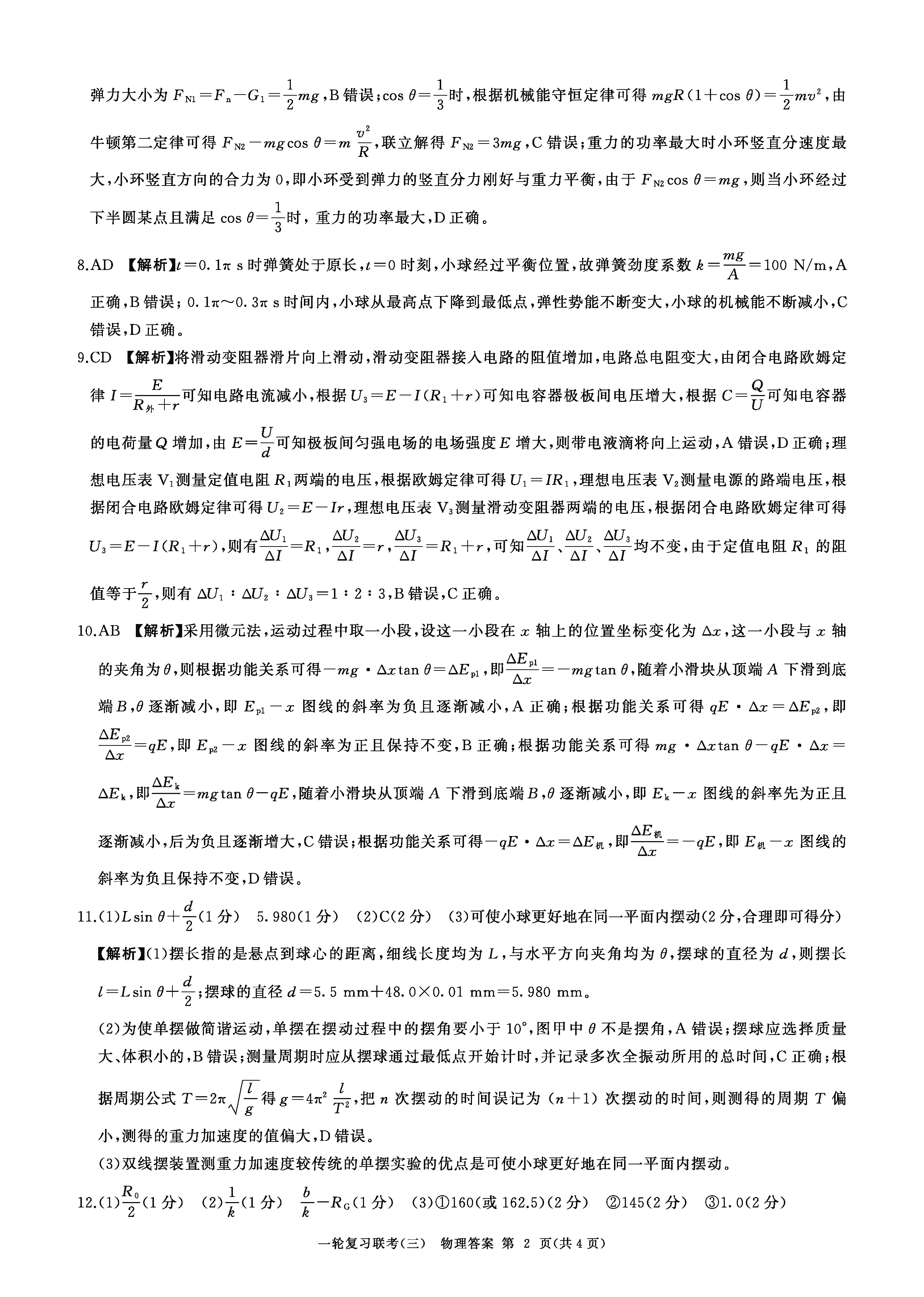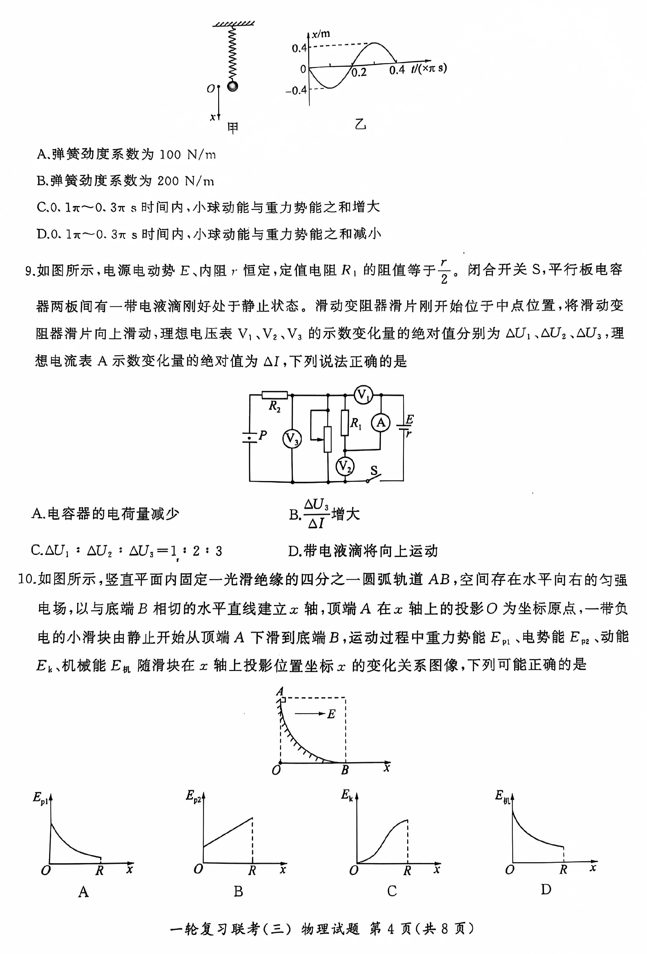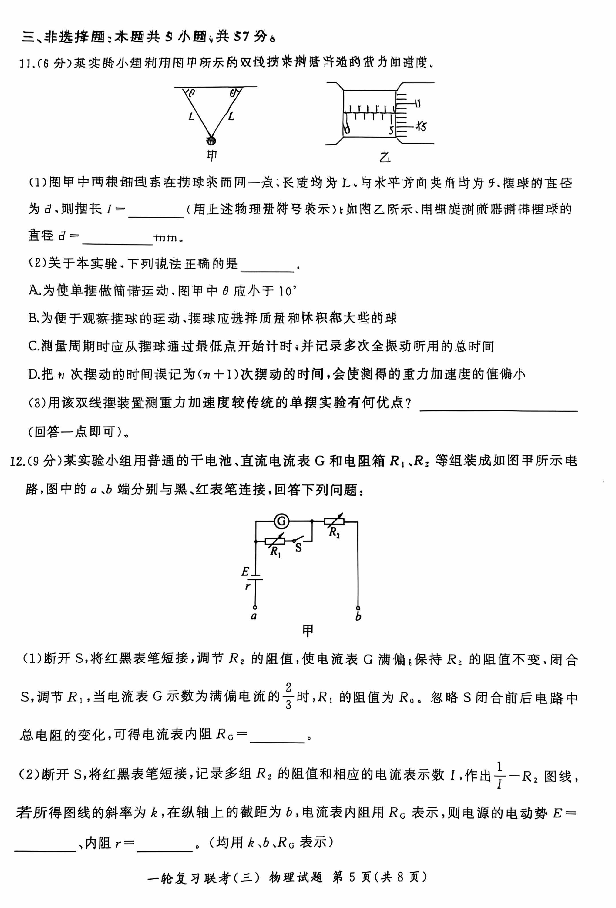 百师联盟2025届高三一轮复习联考(三)物理试题及答案