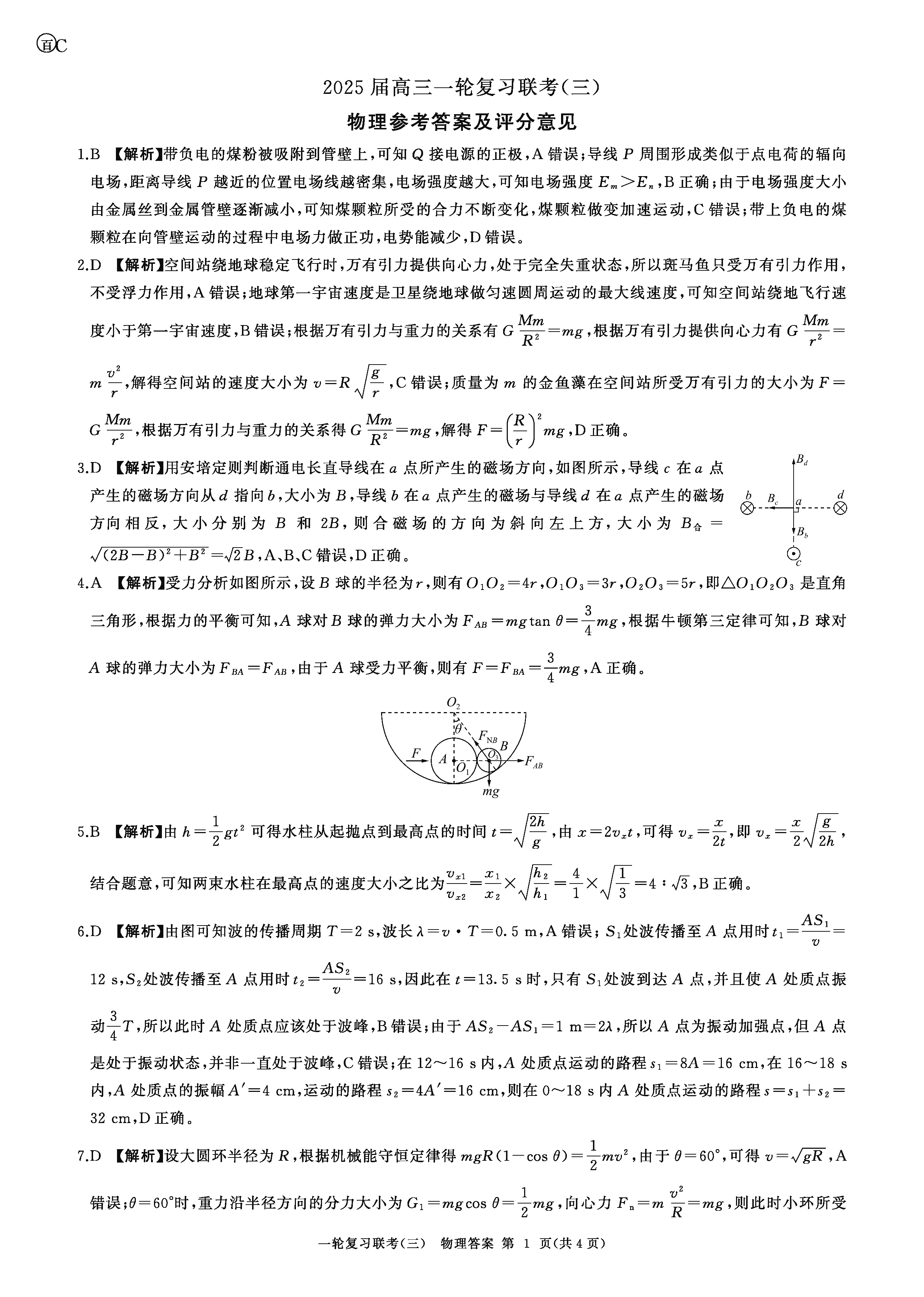 百师联盟2025届高三一轮复习联考(三)物理考试已于近日开考,为方便考生考后及时查看考试情况,查漏补缺、弥补不足,本文整理了试题答案解析相关信息!