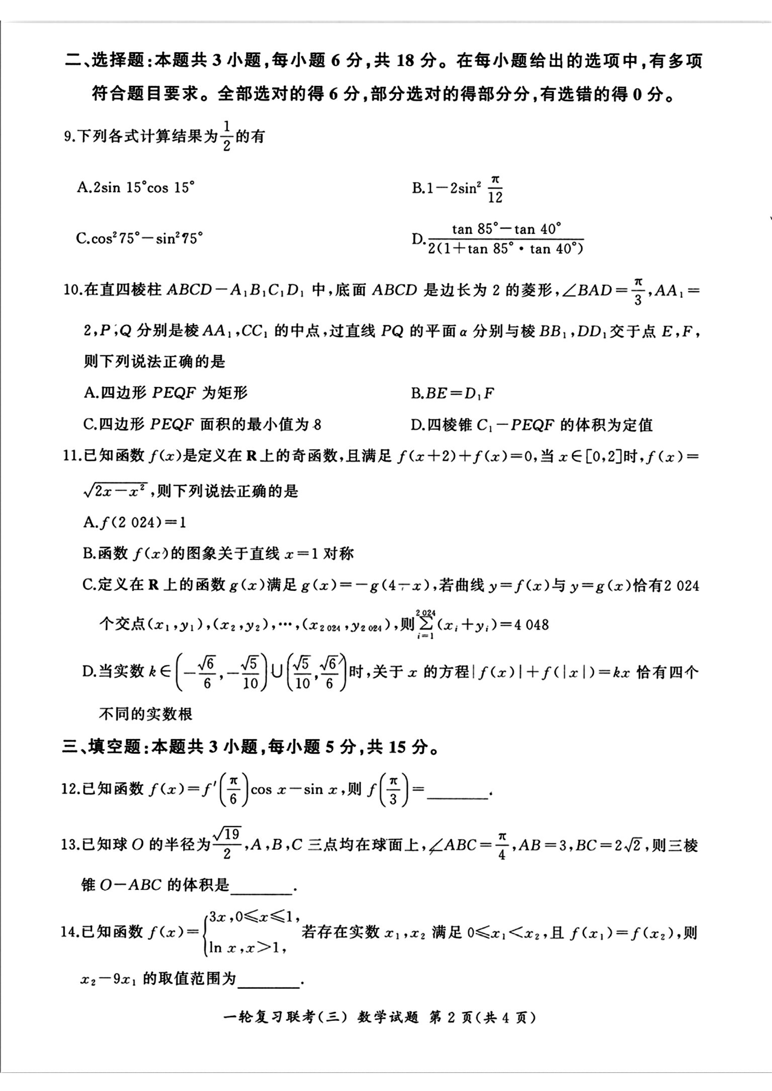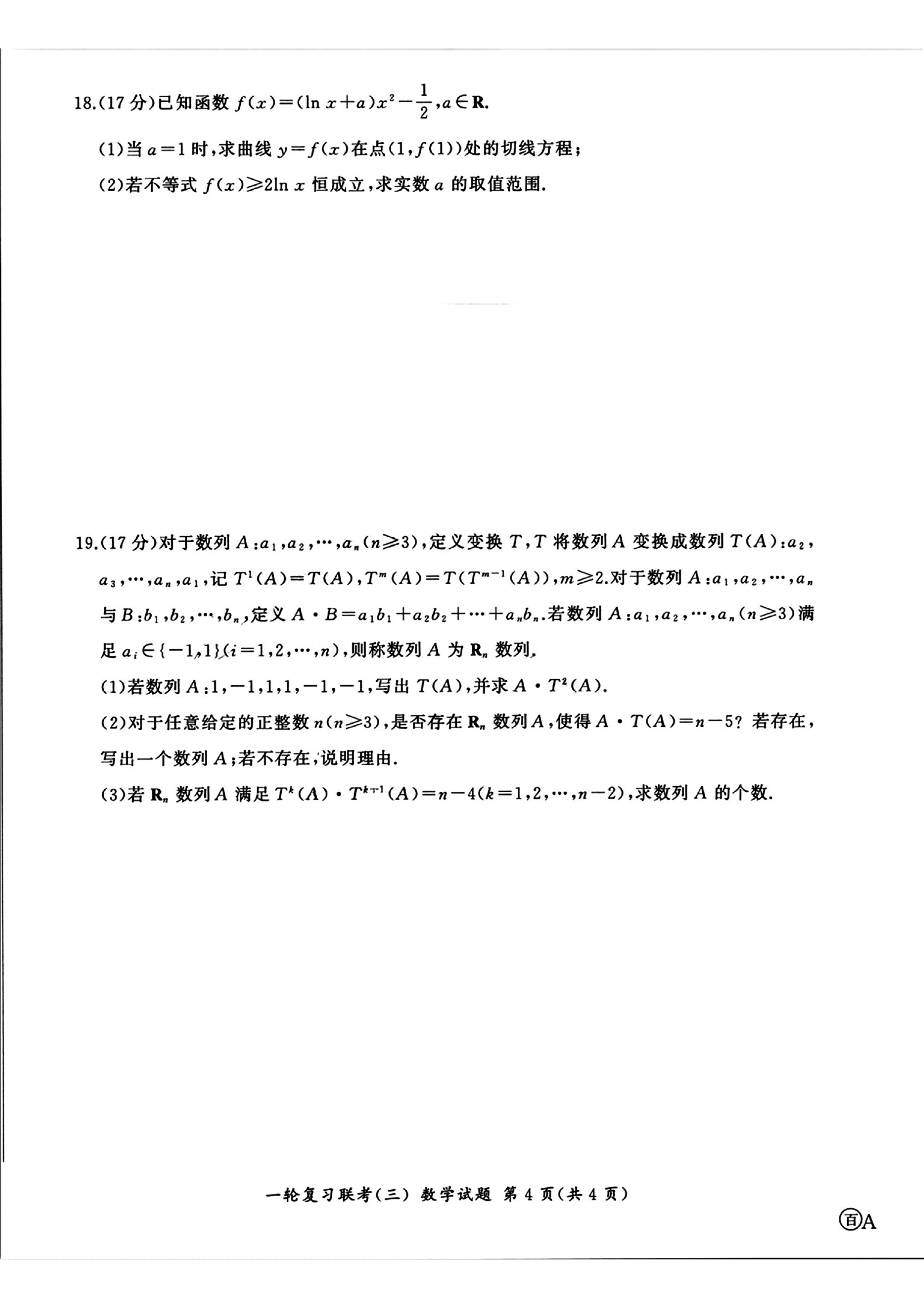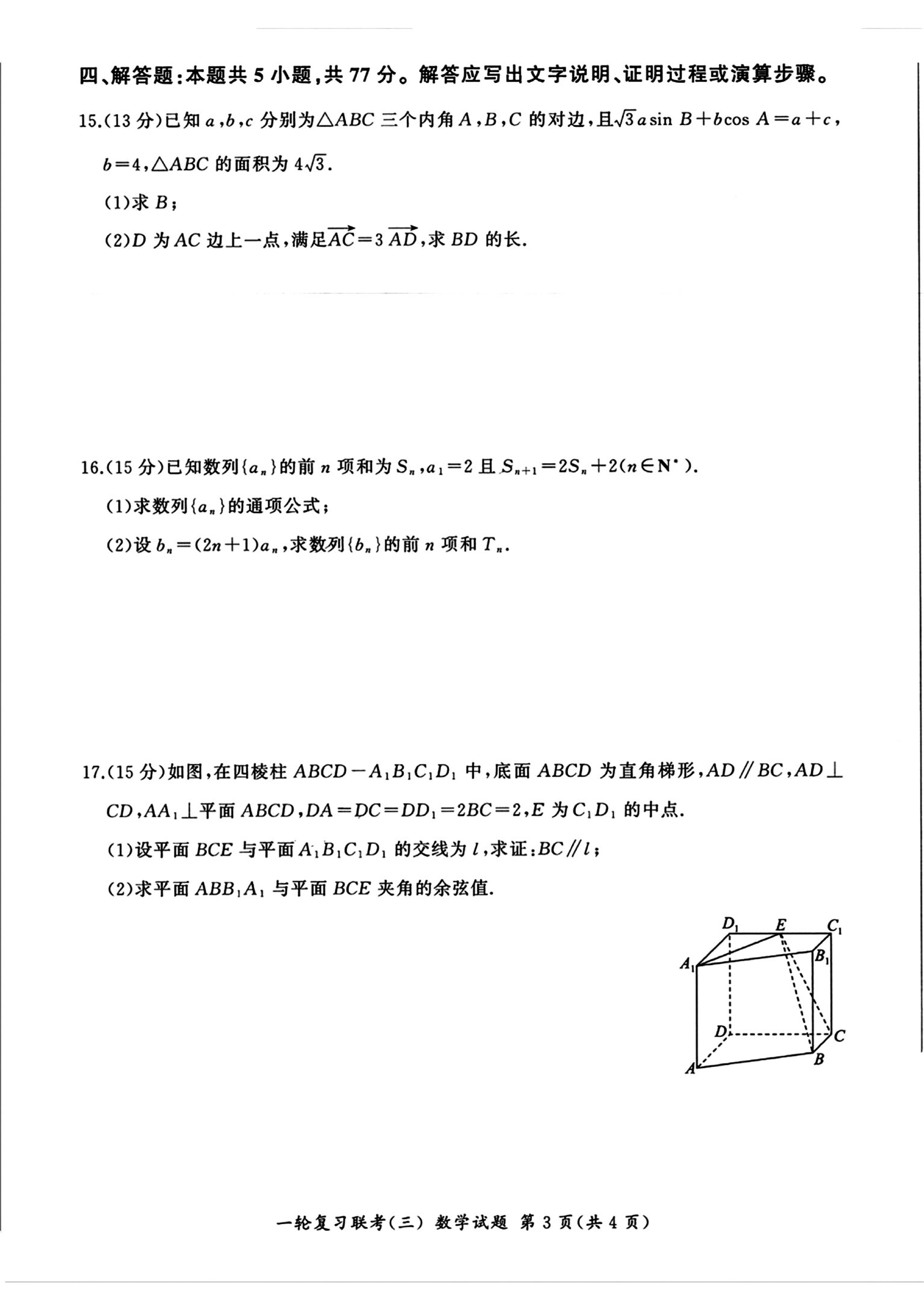 百师联盟2025届高三一轮复习联考(三)数学试题及答案