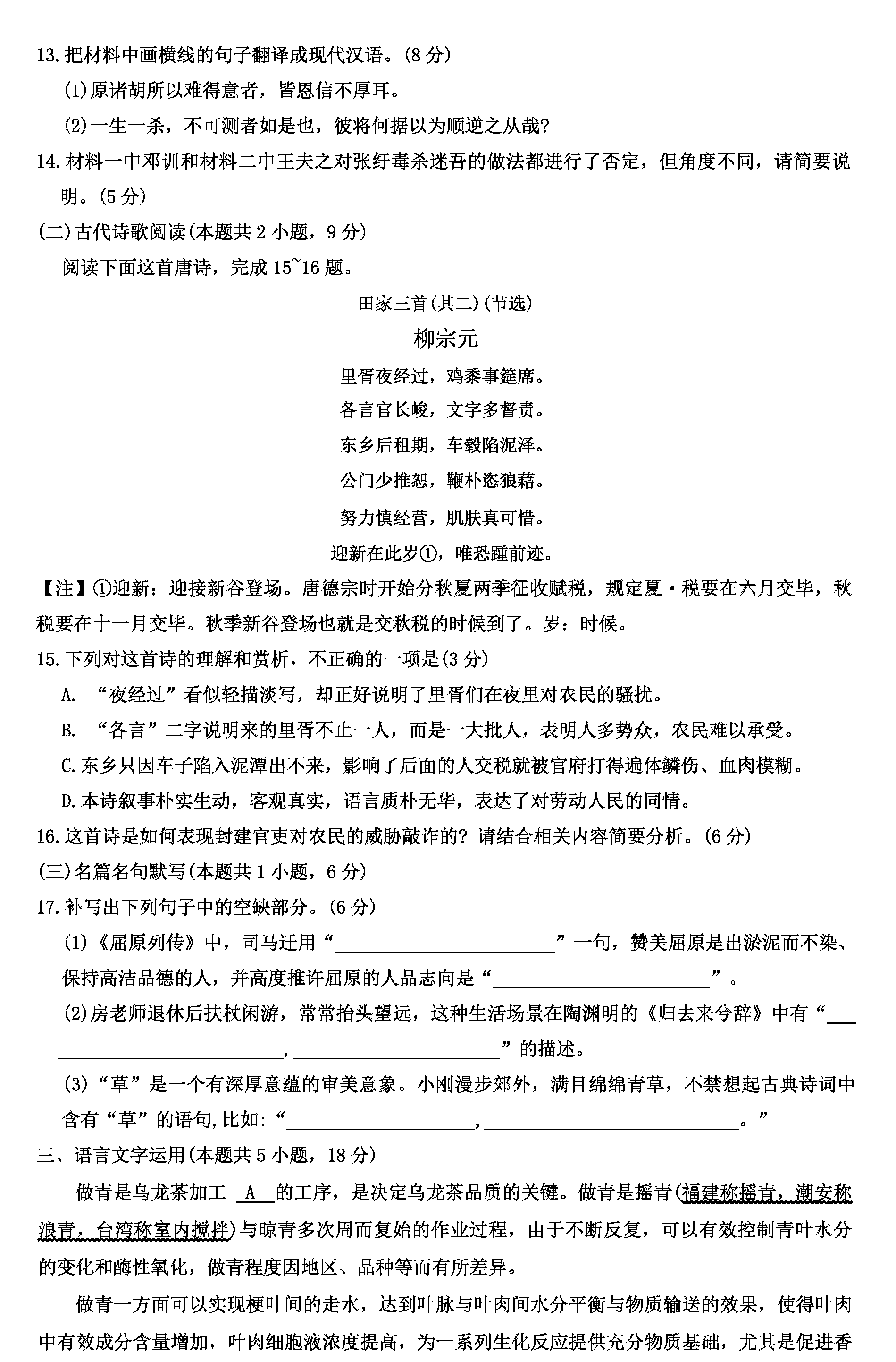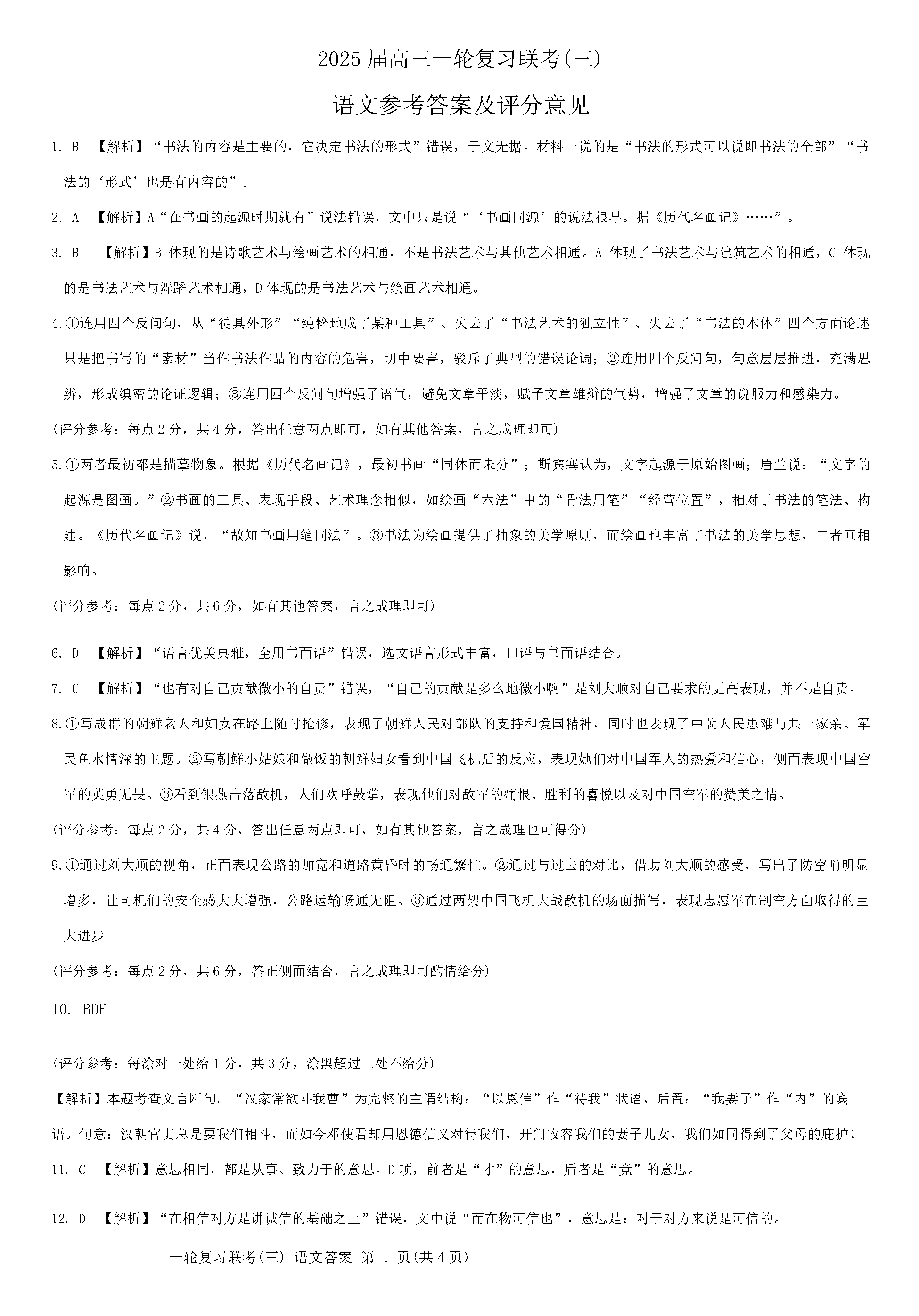 百师联盟2025届高三一轮复习联考(三)语文试题及答案