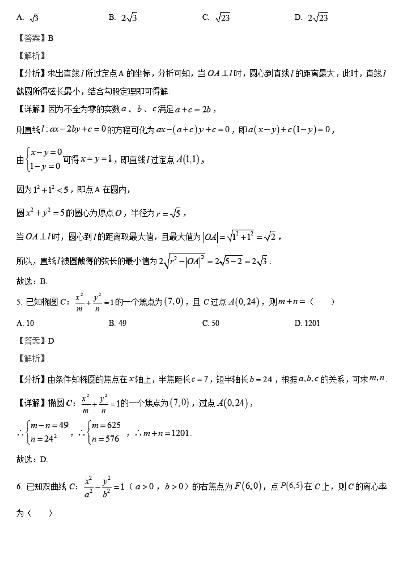 数学试题及答案解析