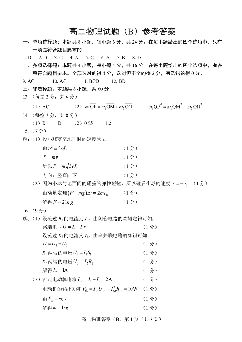 山东 高中物理