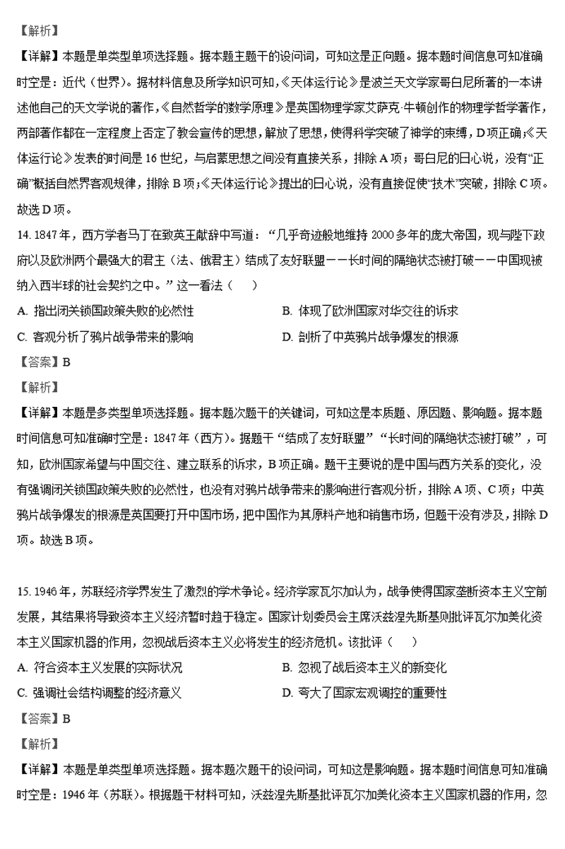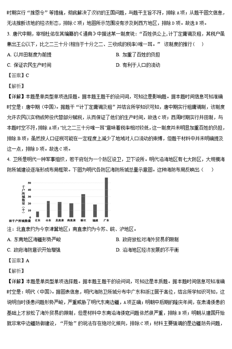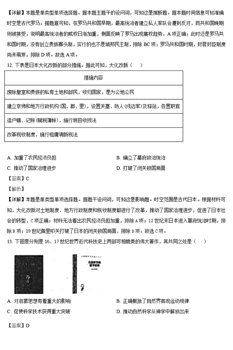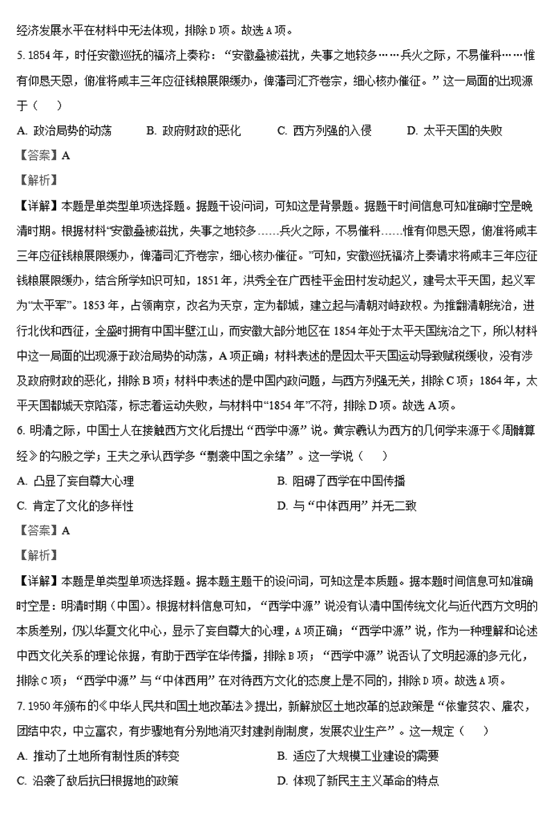 历史试题及答案解析