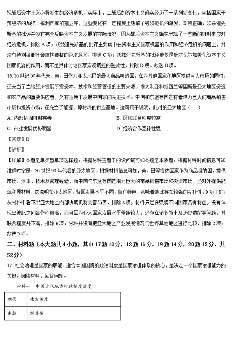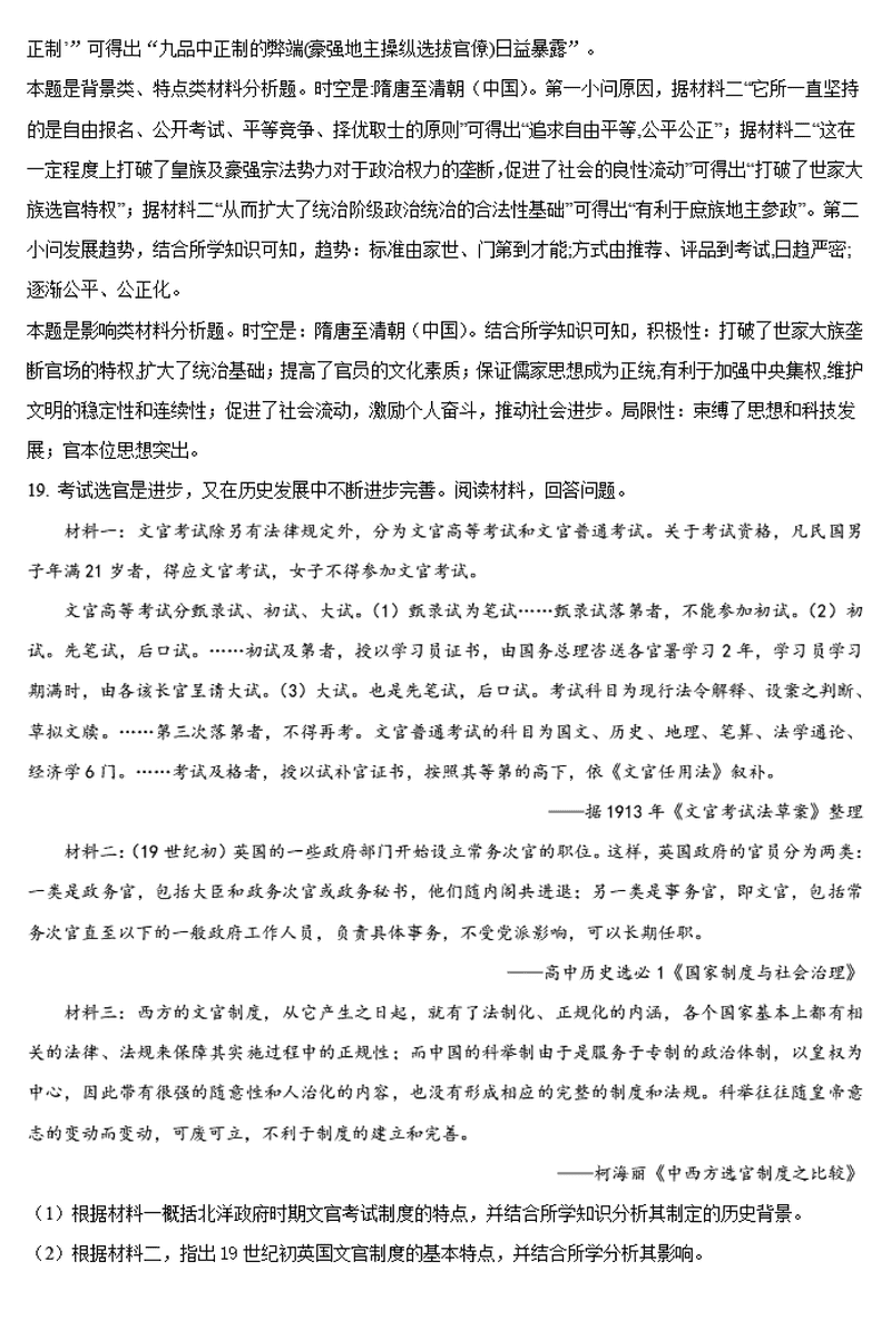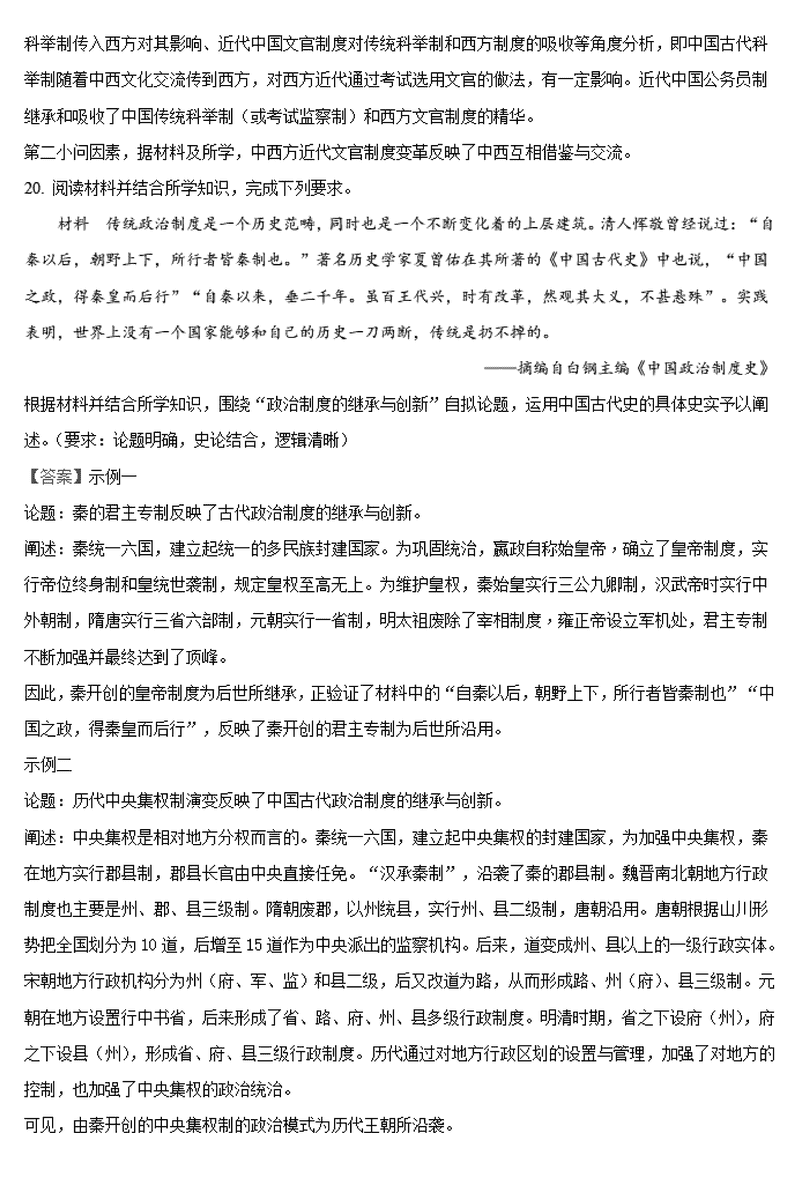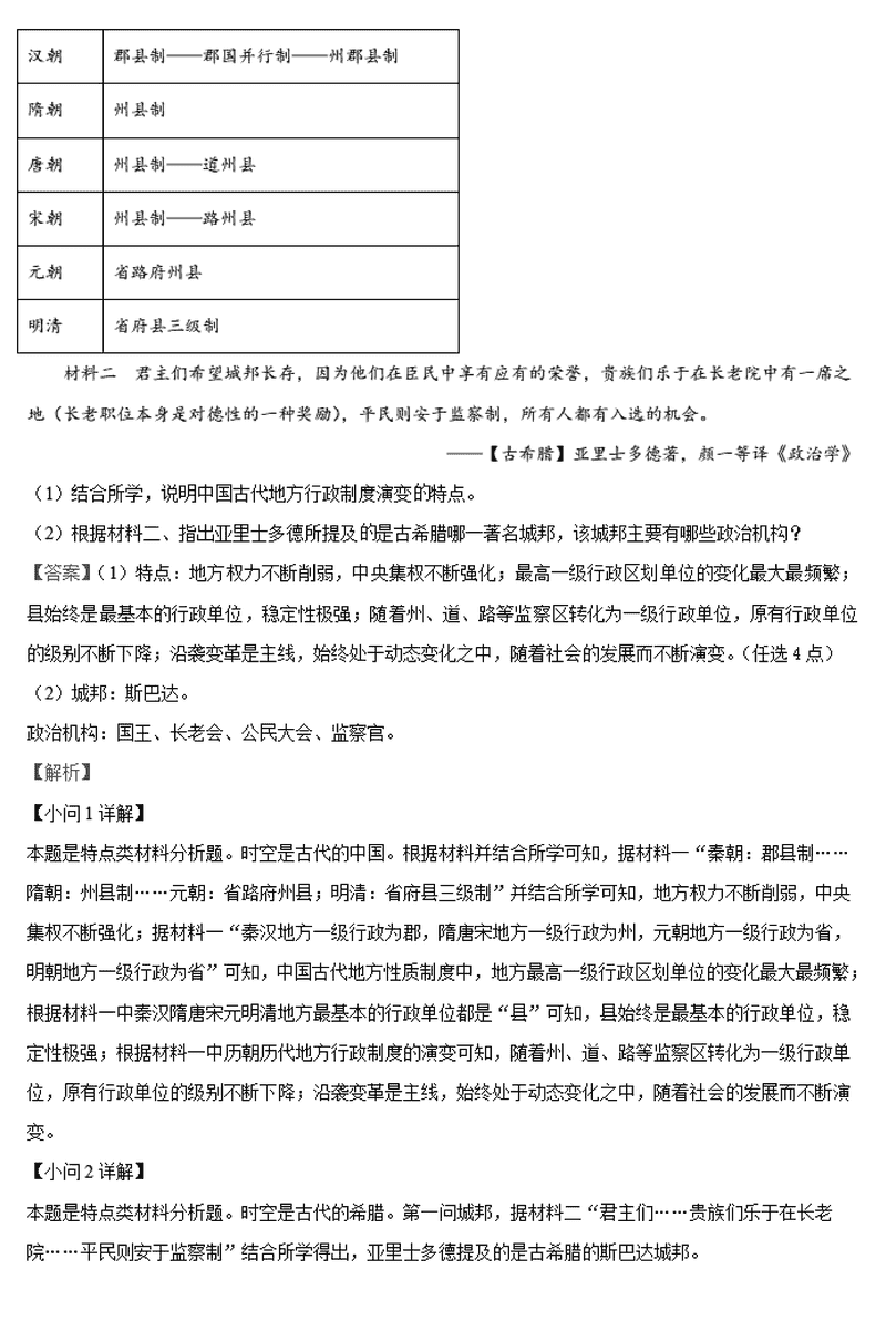 历史试题及答案解析