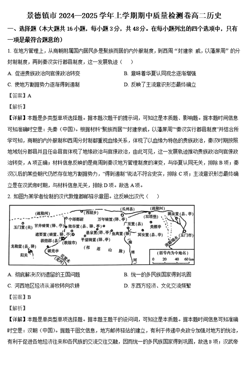 景德镇市2024-2025学年高二上学期11月期中历史试题及答案