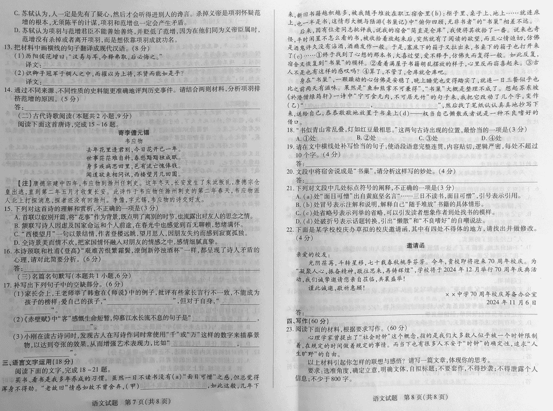 湖南天一大联考2025届高三上学期11月联考语文考试已于近日开考,为方便考生考后及时查看考试情况,查漏补缺、弥补不足,本文整理了试题答案解析相关信息!