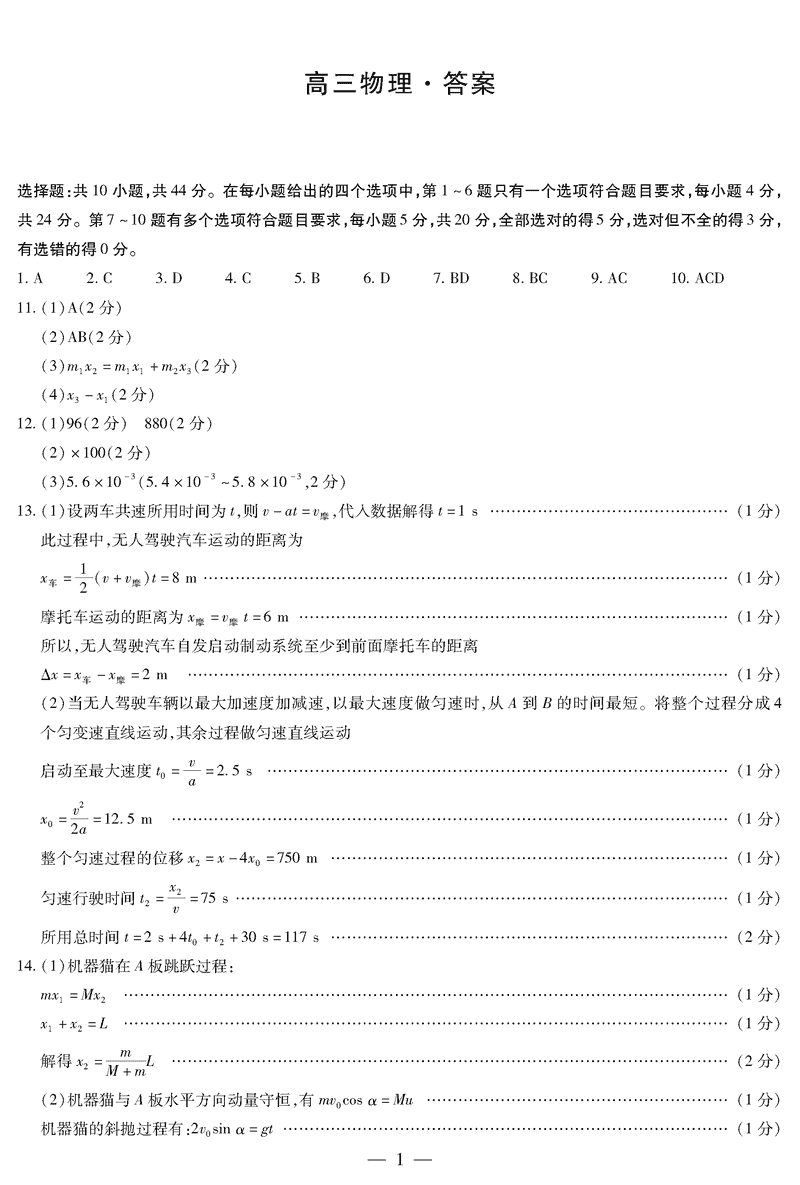 湖南天一大联考2025届高三上学期11月联考物理试题及答案