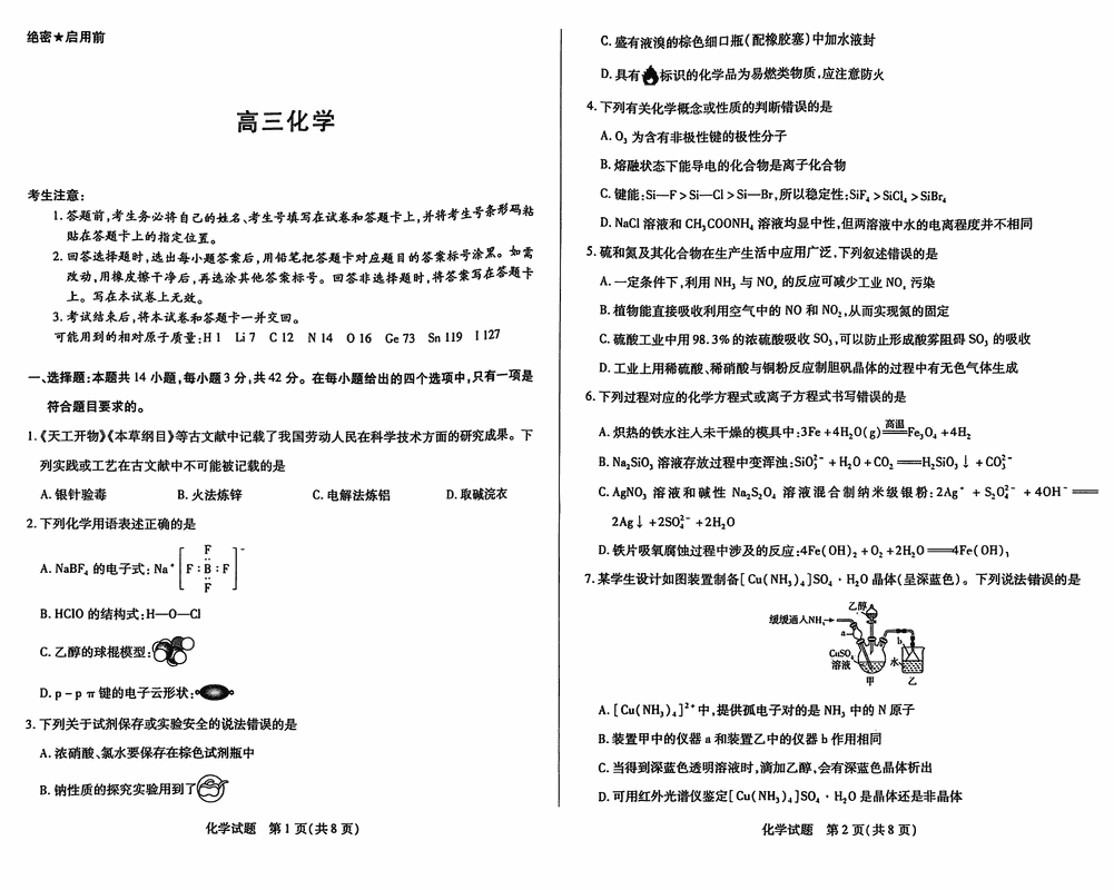 湖南天一大联考2025届高三上学期11月联考化学考试已于近日开考,为方便考生考后及时查看考试情况,查漏补缺、弥补不足,本文整理了试题答案解析相关信息!