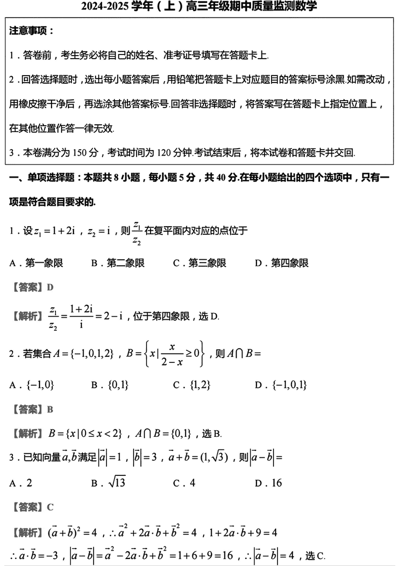 南通通州区、如东县2025届高三上学期期中联考数学考试已于近日开考,为方便考生考后及时查看考试情况,查漏补缺、弥补不足,本文整理了试题答案解析相关信息!