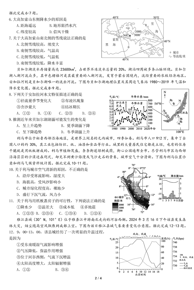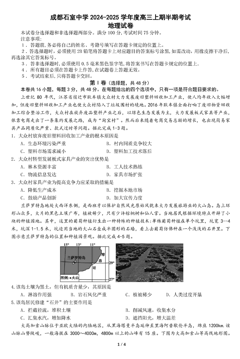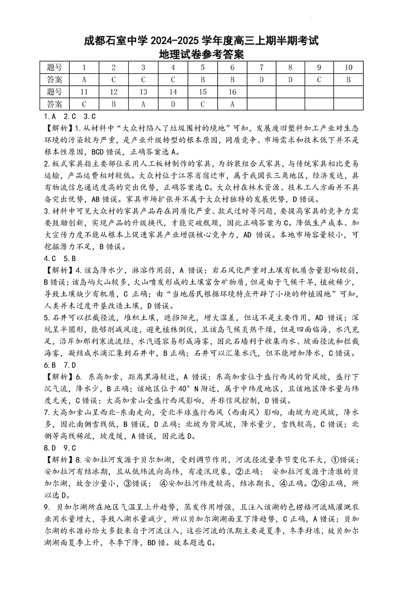 成都石室中学2025届高三11月期中地理考试已于近日开考,为方便考生考后及时查看考试情况,查漏补缺、弥补不足,本文整理了试题答案解析相关信息!