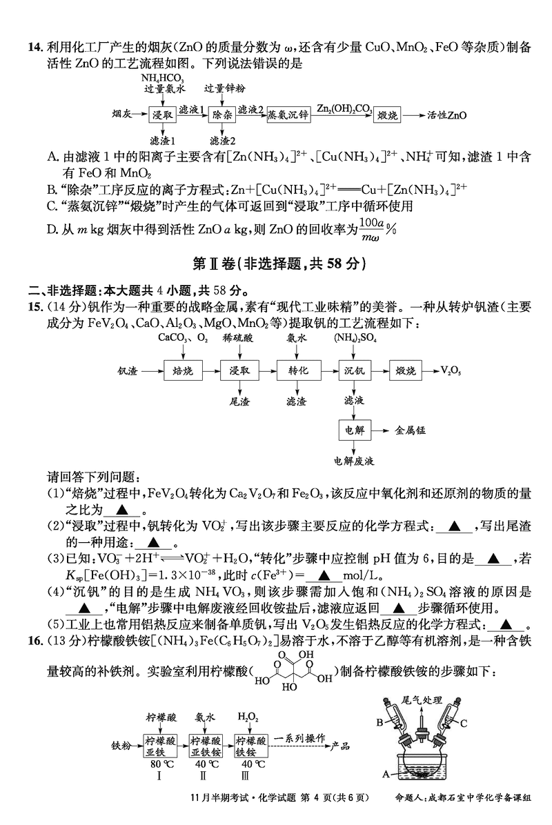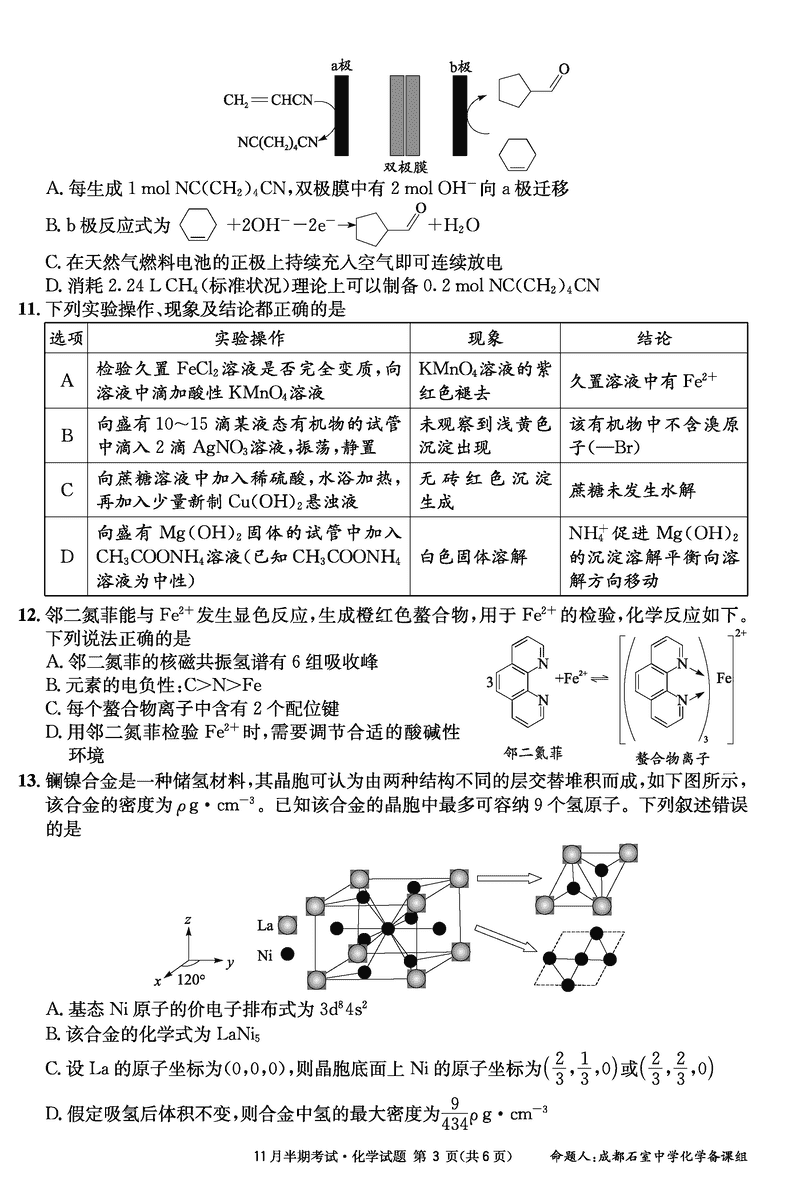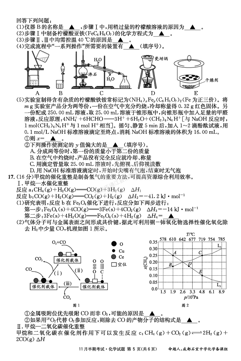 成都石室中学2025届高三11月期中化学考试已于近日开考,为方便考生考后及时查看考试情况,查漏补缺、弥补不足,本文整理了试题答案解析相关信息!