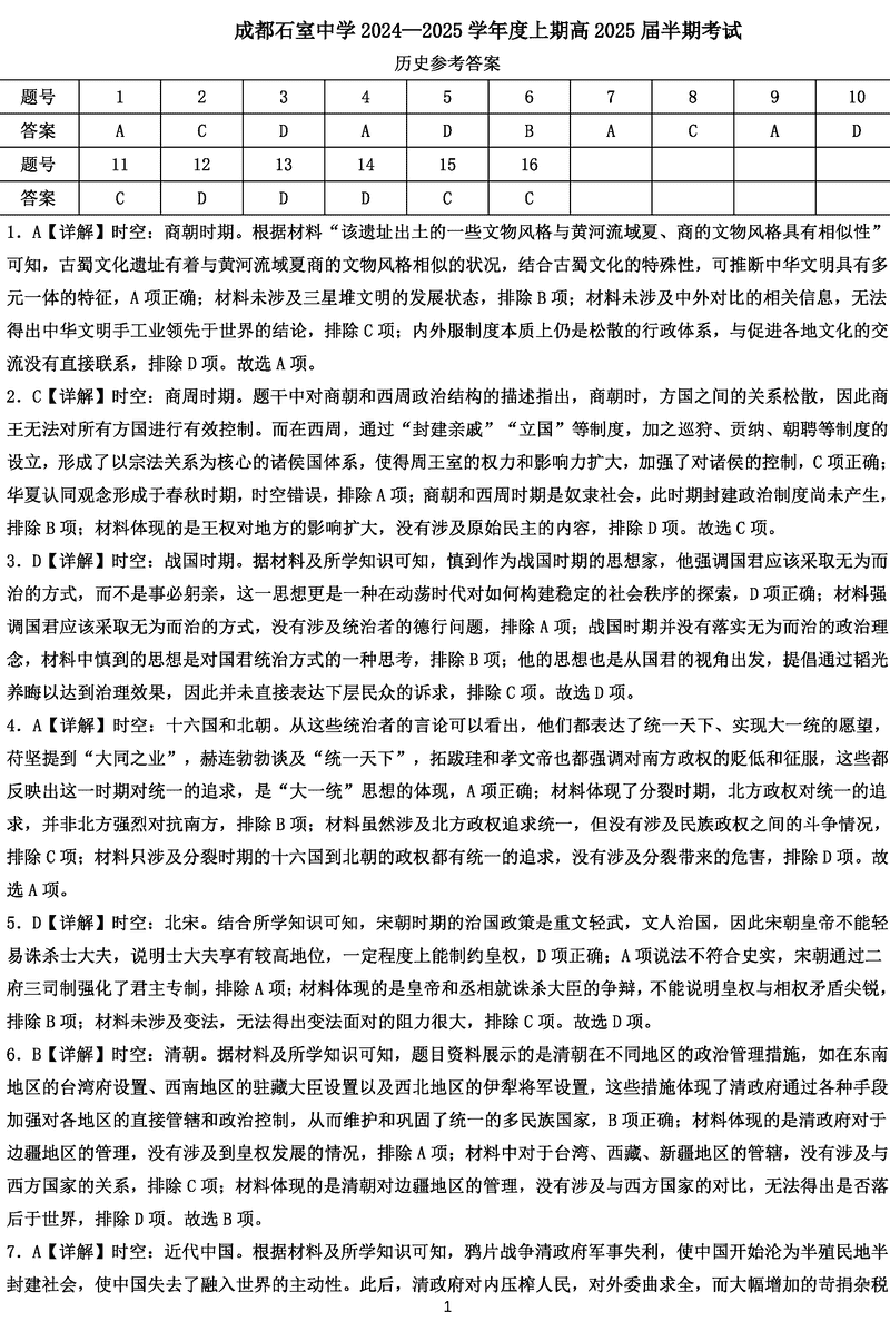 成都石室中学2025届高三11月期中历史考试已于近日开考,为方便考生考后及时查看考试情况,查漏补缺、弥补不足,本文整理了试题答案解析相关信息!