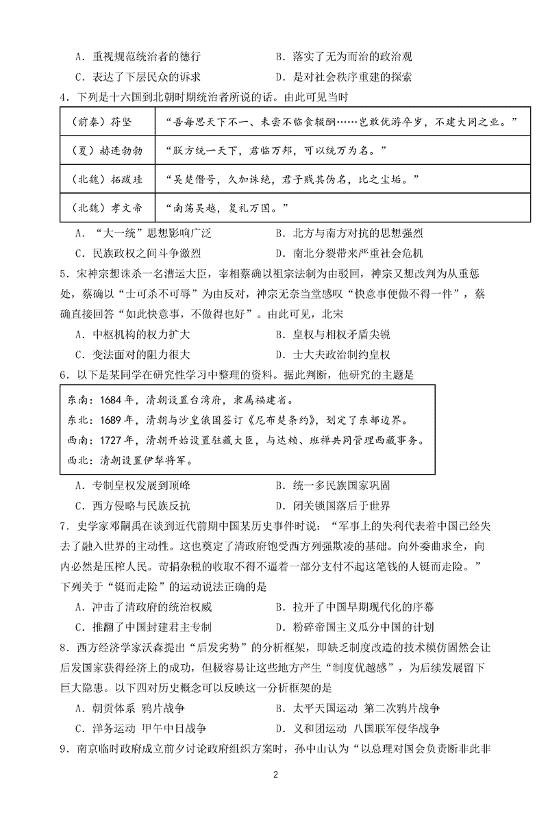 历史试题及答案解析