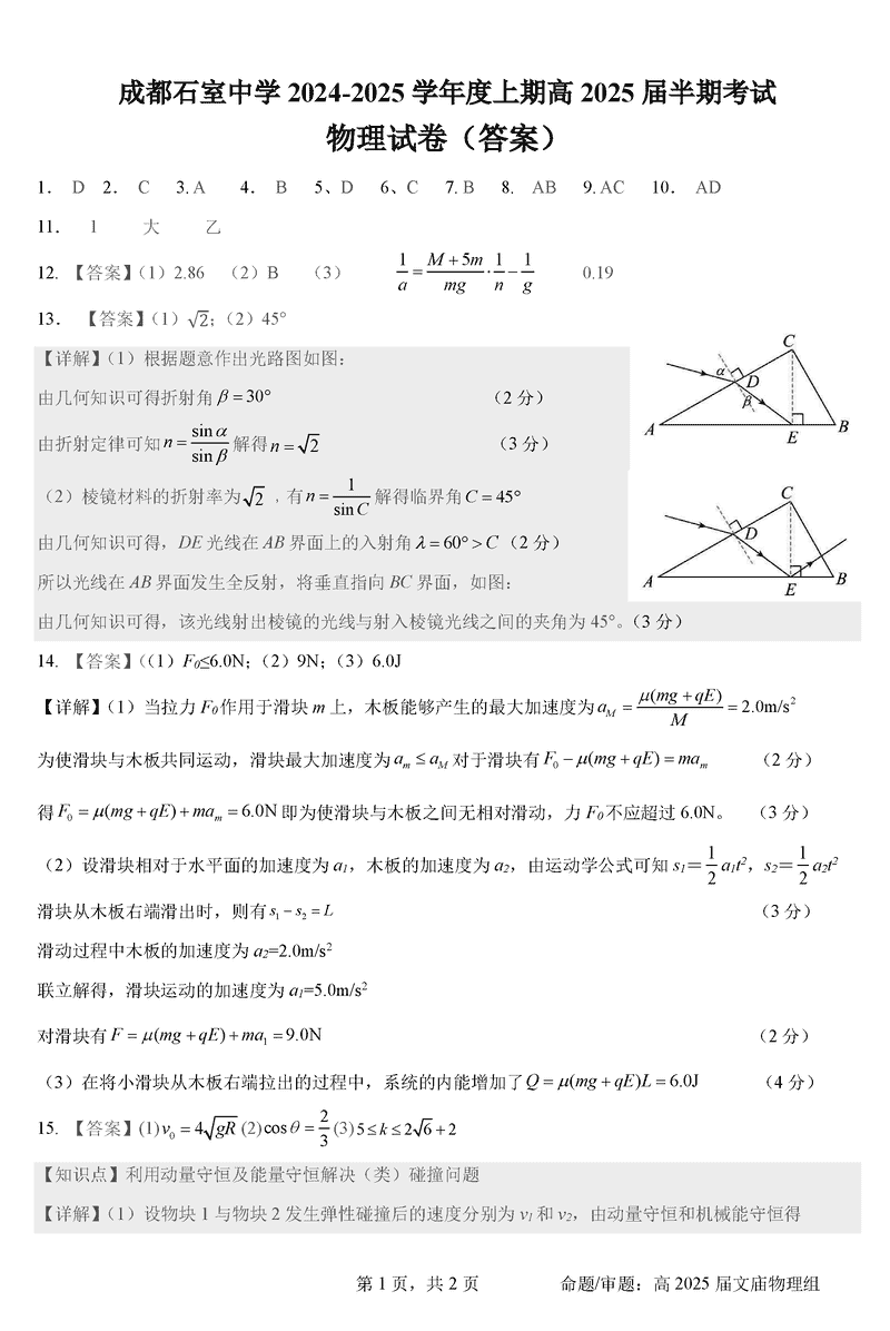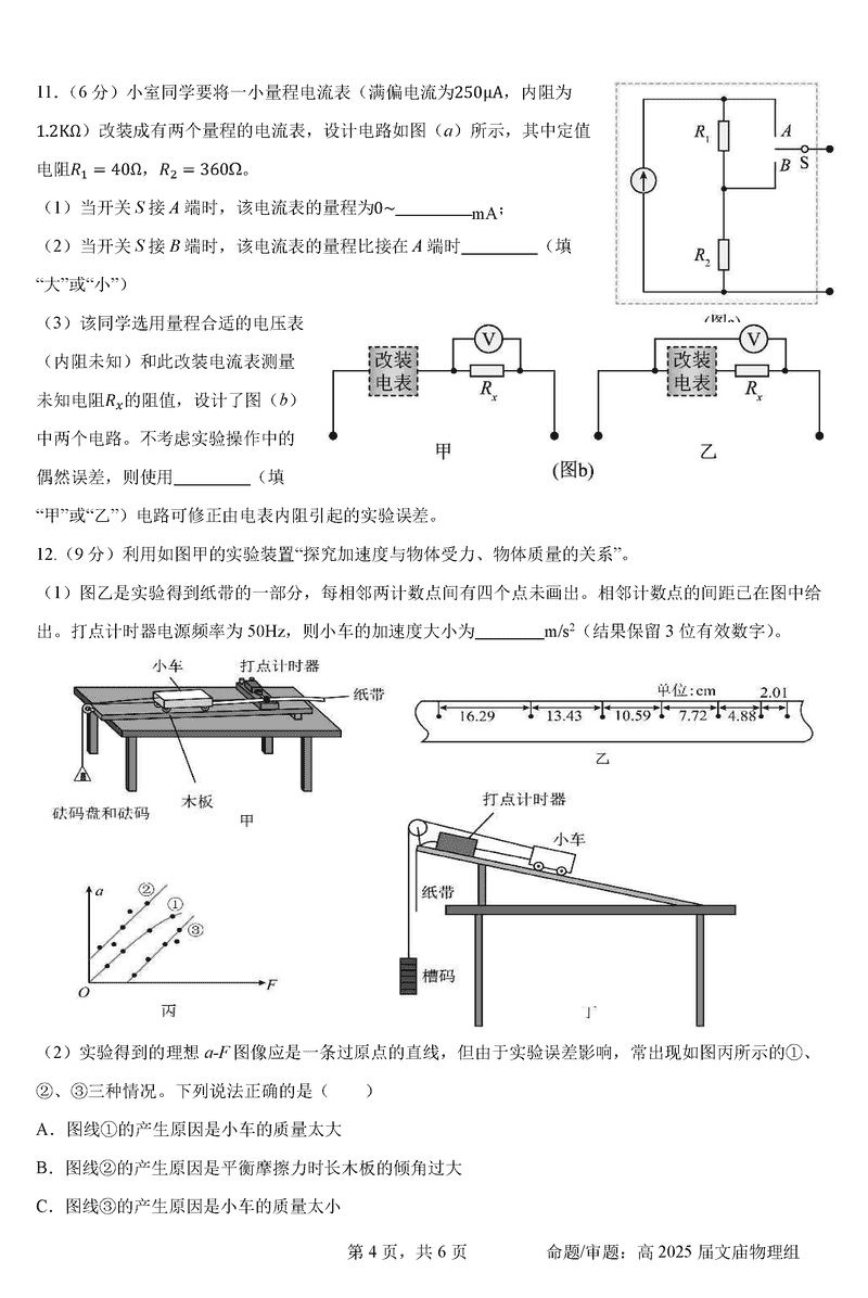 成都石室中学2025届高三11月期中物理考试已于近日开考,为方便考生考后及时查看考试情况,查漏补缺、弥补不足,本文整理了试题答案解析相关信息!