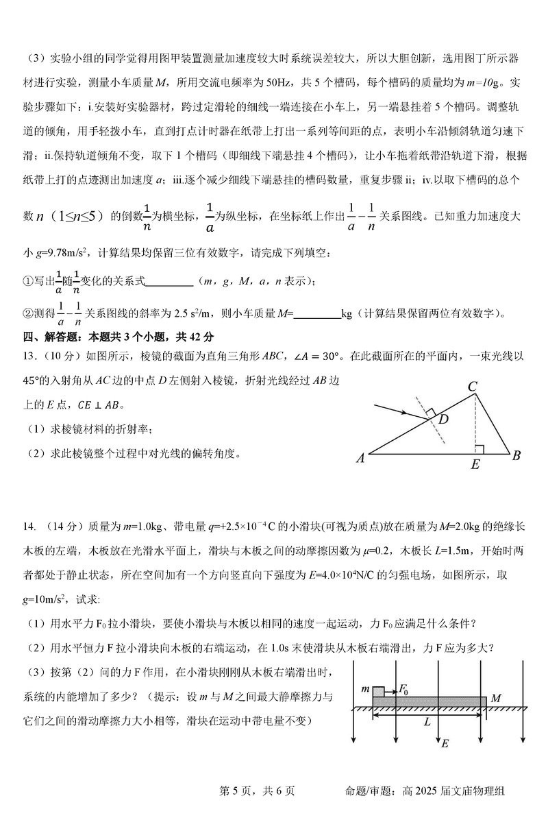 成都石室中学2025届高三11月期中物理试题及答案