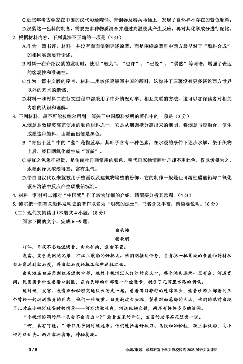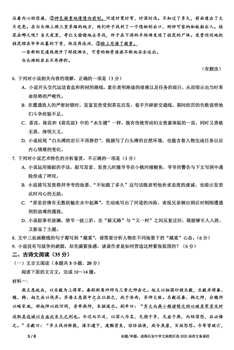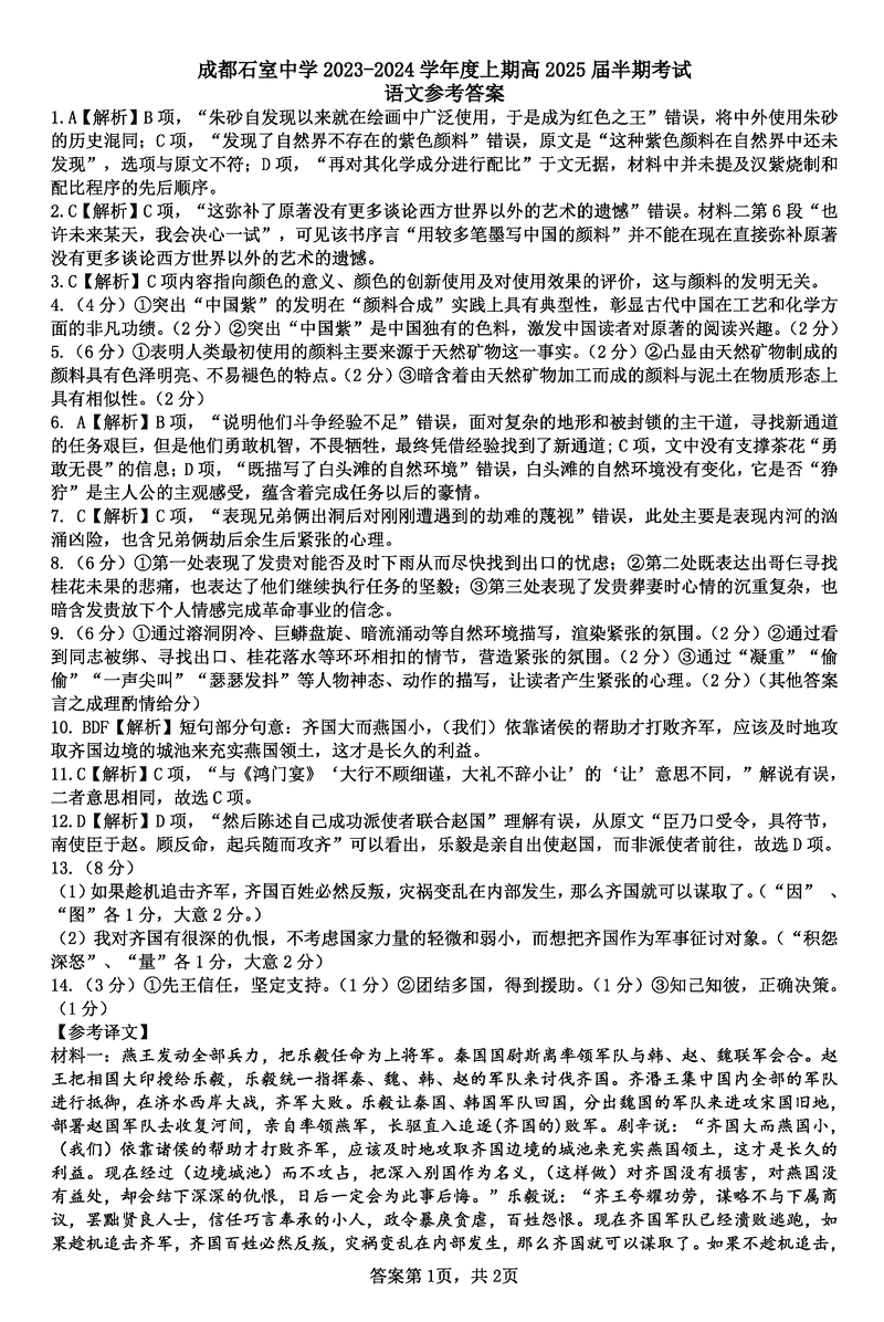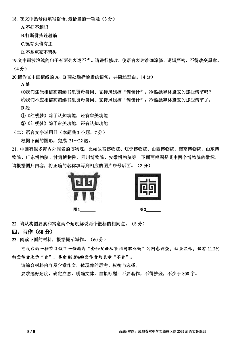 成都石室中学2025届高三11月期中语文考试已于近日开考,为方便考生考后及时查看考试情况,查漏补缺、弥补不足,本文整理了试题答案解析相关信息!