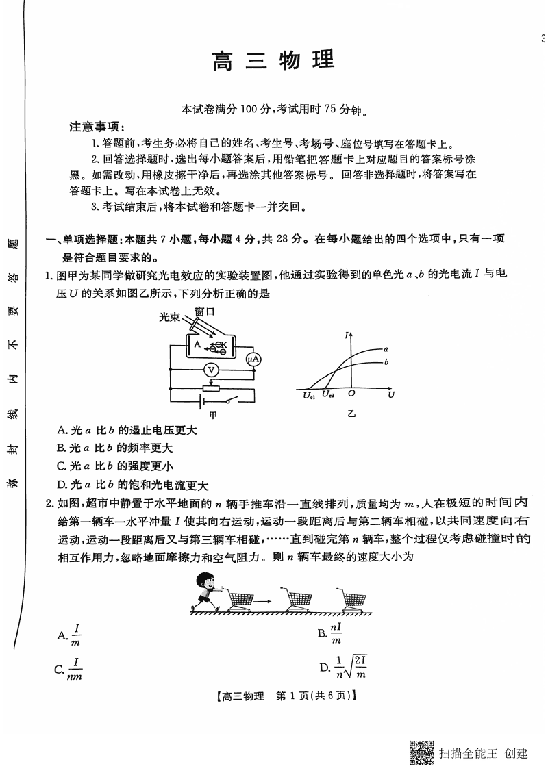 广东2025届高三金太阳11月联考物理试题及答案 时间:2024-11-30 18:08 广东 理综试题 广东2025届高三金太阳11月联考物理考试已于近日开考,为方便考生考后及时查看考试情况,查漏补缺、弥补不足,本文整理了试题答案解析相关信息! 汇总:广东2025届高三金太阳11月联考试题及答案汇总 物理试题及答案解析