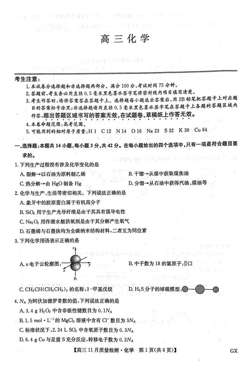 九师联盟2025届高三上学期11月联考化学试题及答案 时间:2024-11-30 19:12 理综试题 九师联盟2025届高三上学期11月联考化学考试已于近日开考,为方便考生考后及时查看考试情况,查漏补缺、弥补不足,本文整理了试题答案解析相关信息! 汇总:九师联盟2025届高三上学期11月联考试题及答案汇总 化学试题及答案解析