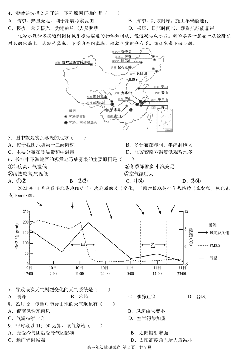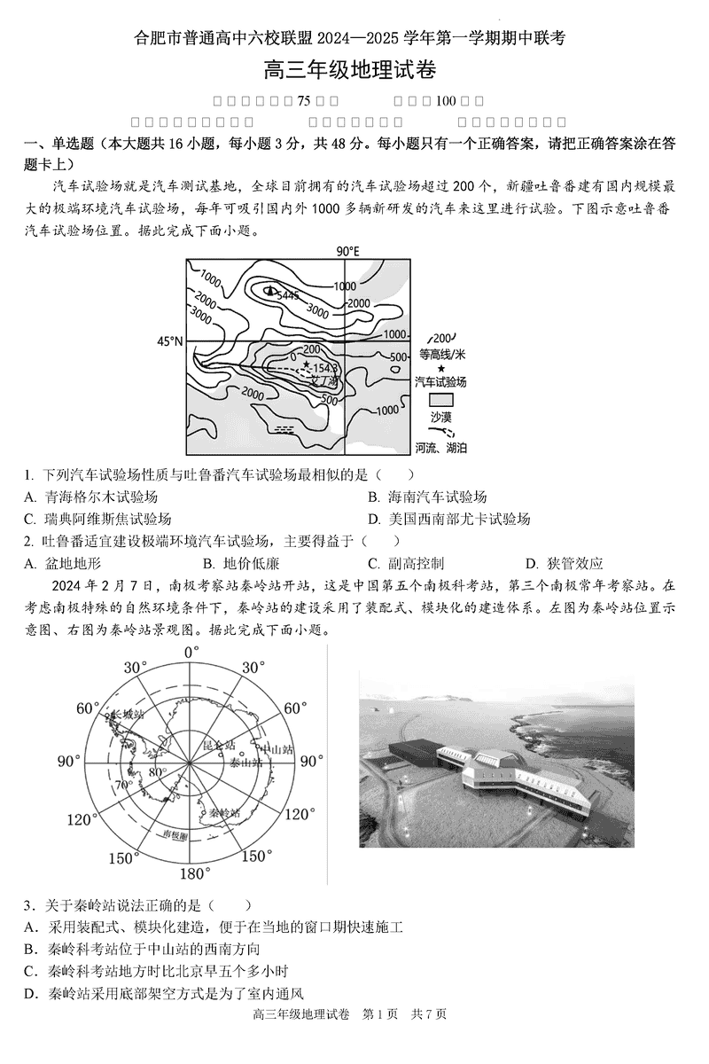 合肥六校联盟2025届高三上学期期中联考地理试题及答案