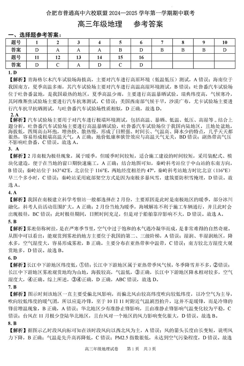 合肥六校联盟2025届高三上学期期中联考地理考试已于近日开考,为方便考生考后及时查看考试情况,查漏补缺、弥补不足,本文整理了试题答案解析相关信息!