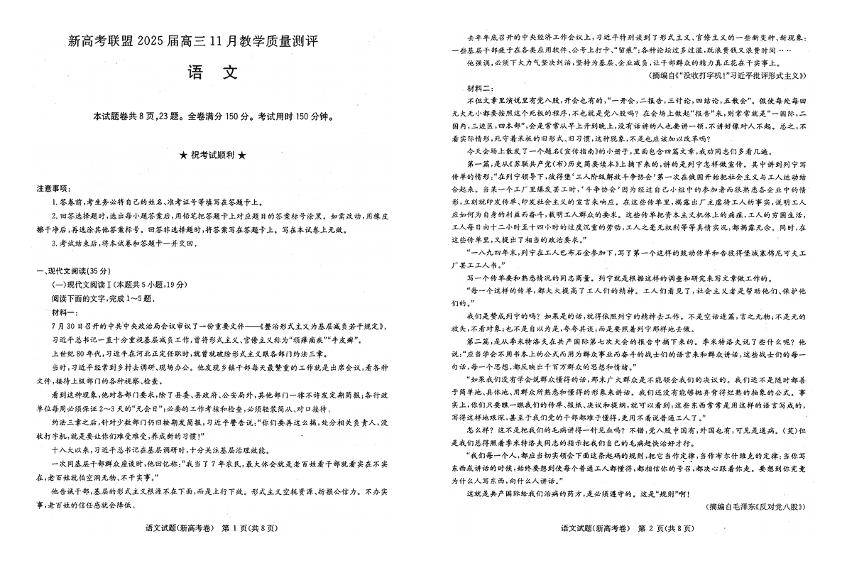 华大新高考联盟2025届高三11月教学质量测评语文考试已于近日开考,为方便考生考后及时查看考试情况,查漏补缺、弥补不足,本文整理了试题答案解析相关信息!