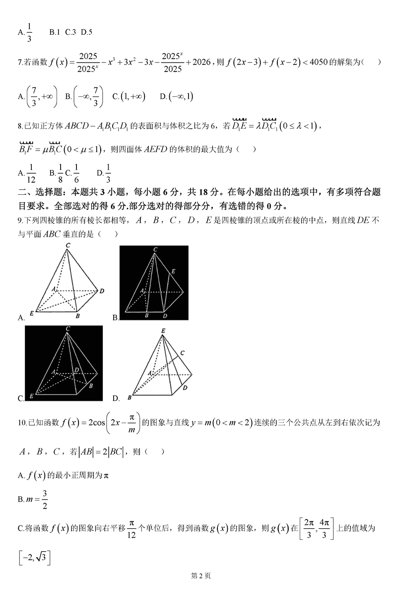 华大新高考联盟2025届高三11月教学质量测评数学试题及答案
