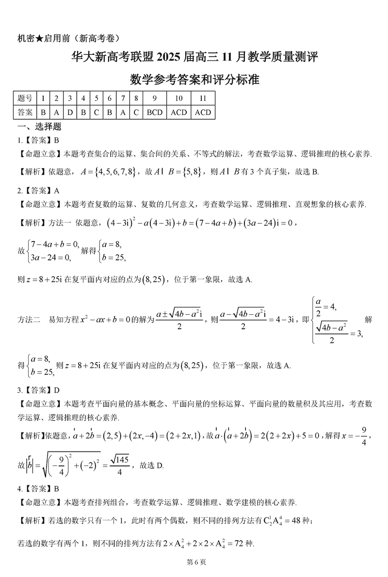 华大新高考联盟2025届高三11月教学质量测评数学考试已于近日开考,为方便考生考后及时查看考试情况,查漏补缺、弥补不足,本文整理了试题答案解析相关信息!