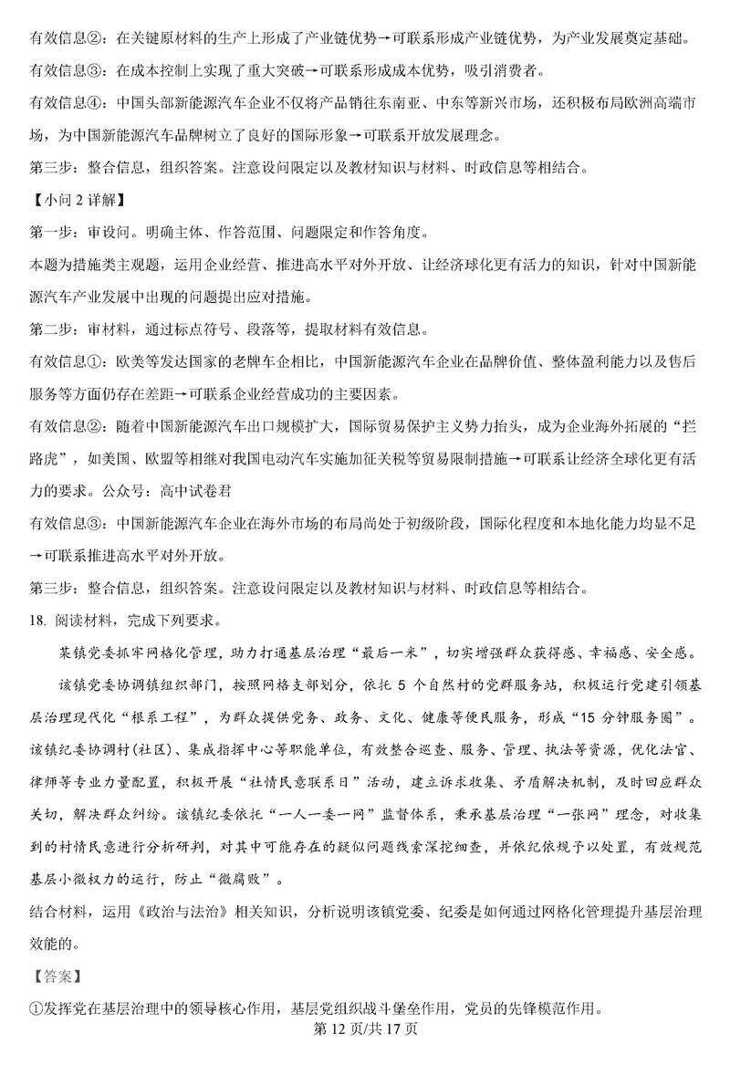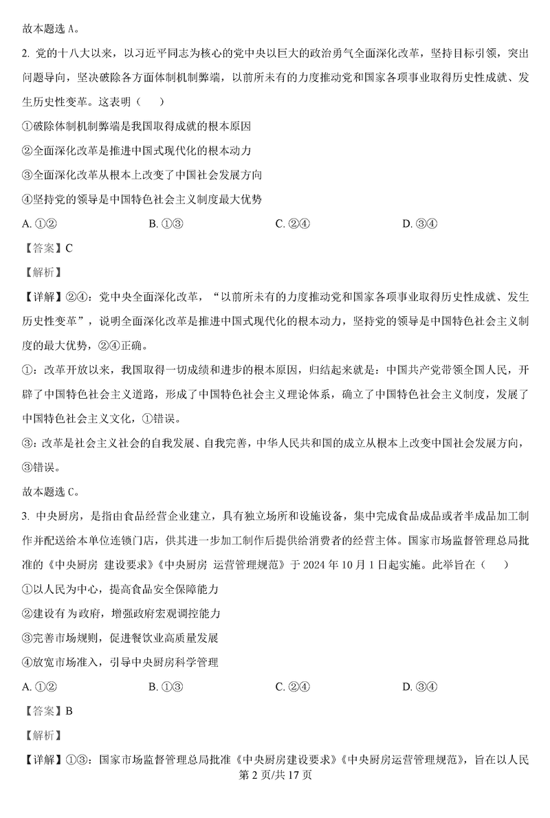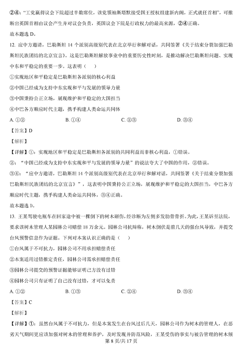 政治试题及答案解析