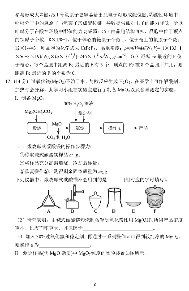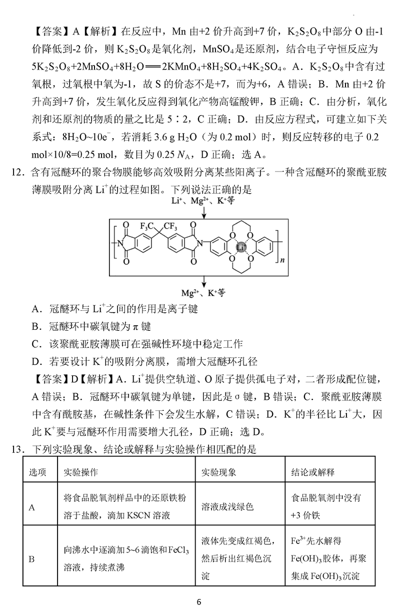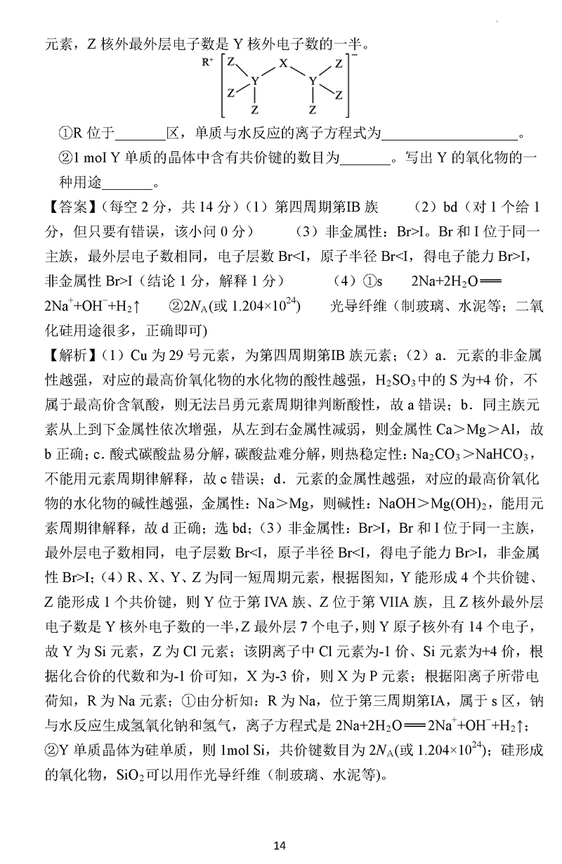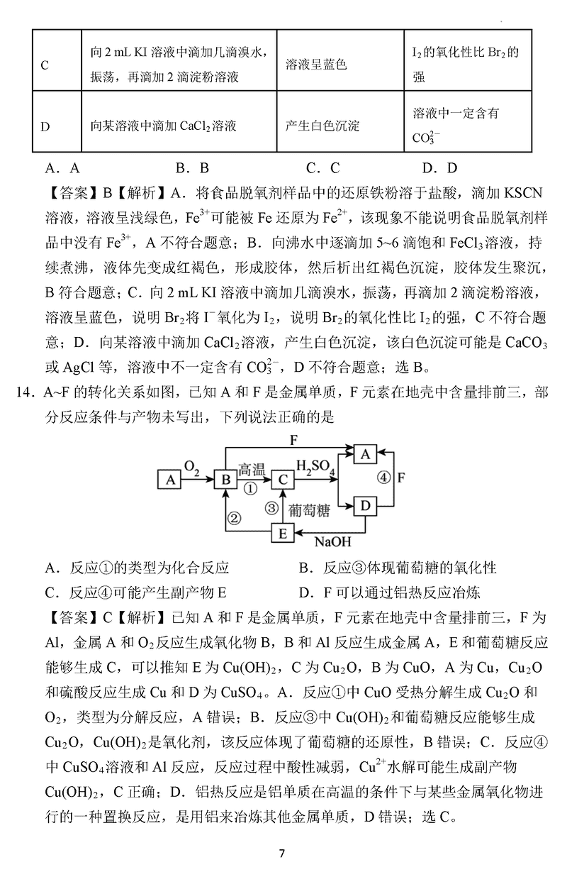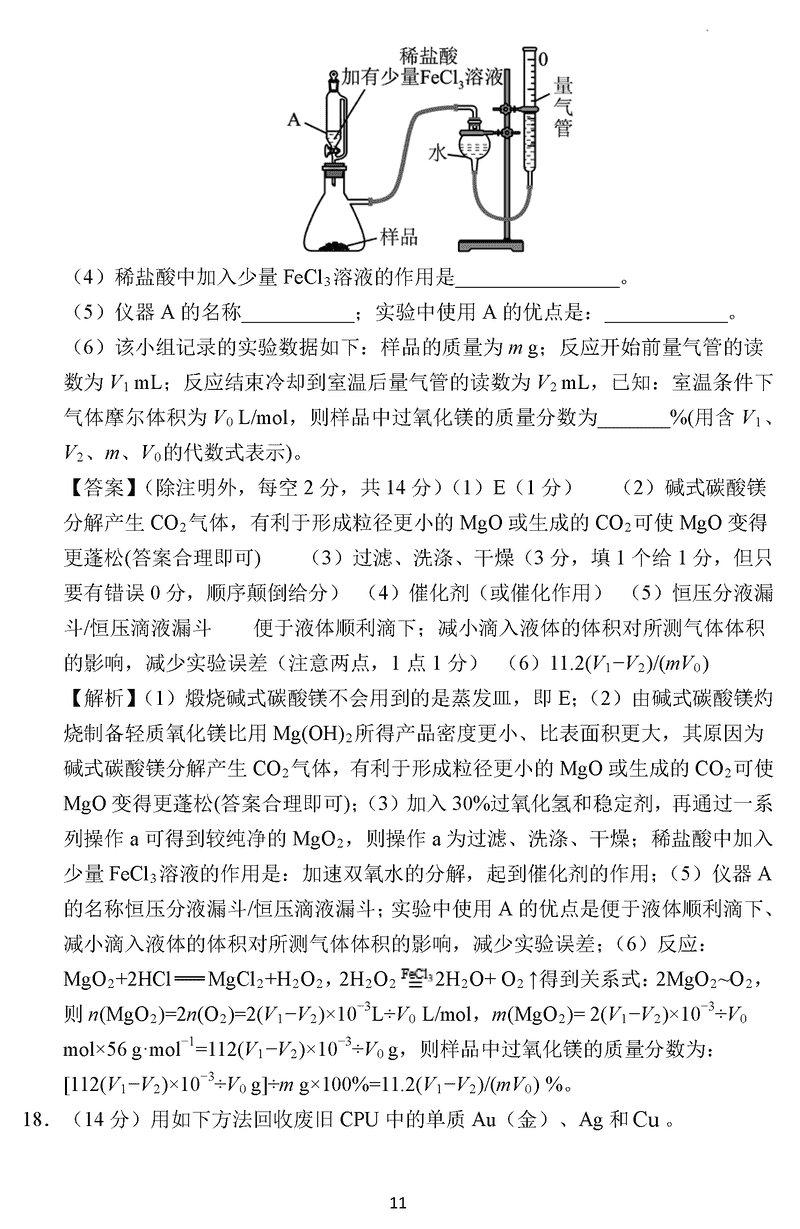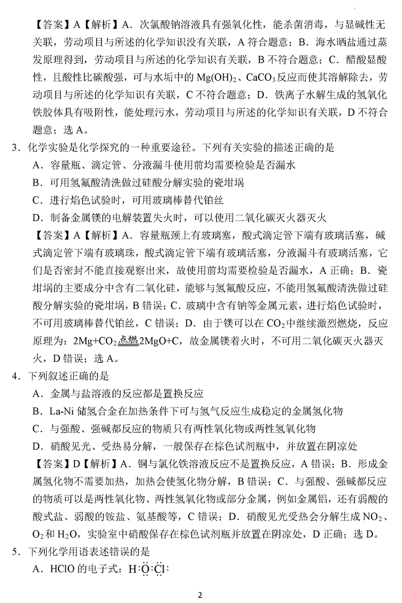 化学试题及答案解析