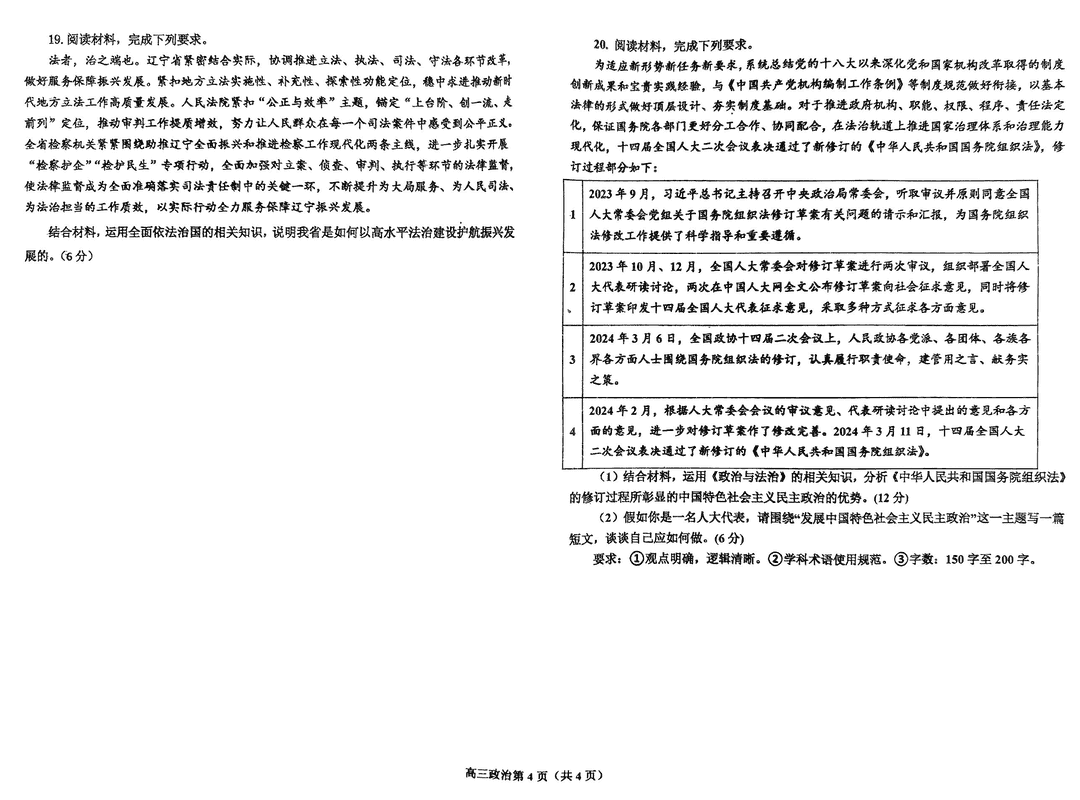 鞍山市重点高中协作校2025届高三上学期期中政治试题及答案