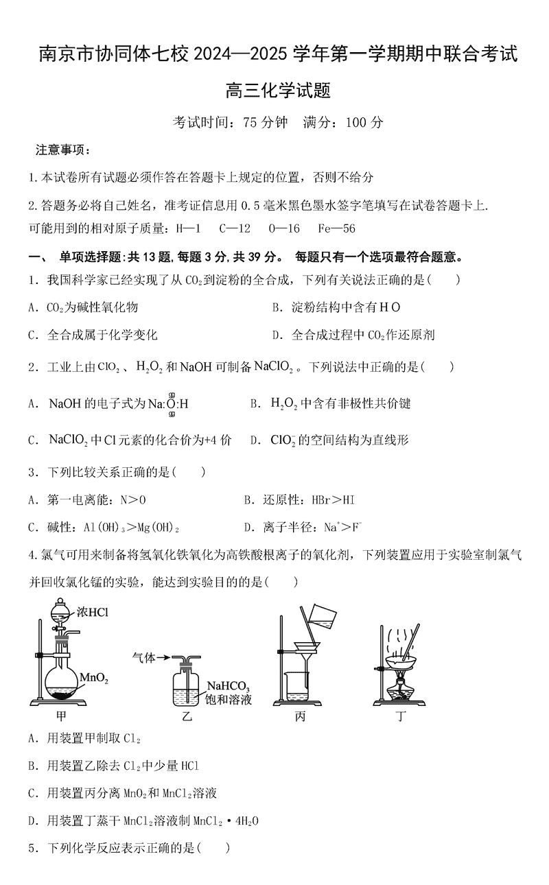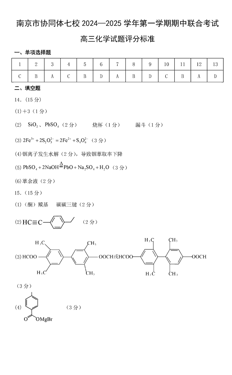 南京协同体七校2025届高三期中联考化学试题及答案 时间:2024-12-02 17:28 江苏 理综试题 南京协同体七校2025届高三期中联考化学考试已于近日开考,为方便考生考后及时查看考试情况,查漏补缺、弥补不足,本文整理了试题答案解析相关信息! 汇总:南京协同体七校2025届高三期中联考试题及答案汇总 化学试题及答案解析