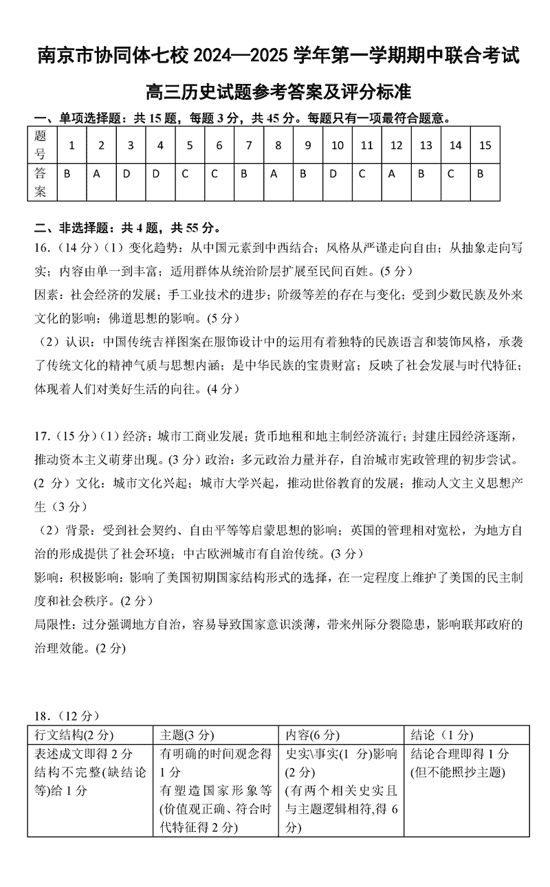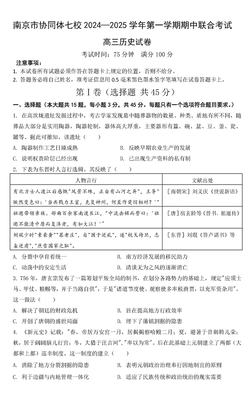 南京协同体七校2025届高三期中联考历史试题及答案 时间:2024-12-02 17:29 江苏 文综试题 南京协同体七校2025届高三期中联考历史考试已于近日开考,为方便考生考后及时查看考试情况,查漏补缺、弥补不足,本文整理了试题答案解析相关信息! 汇总:南京协同体七校2025届高三期中联考试题及答案汇总 历史试题及答案解析