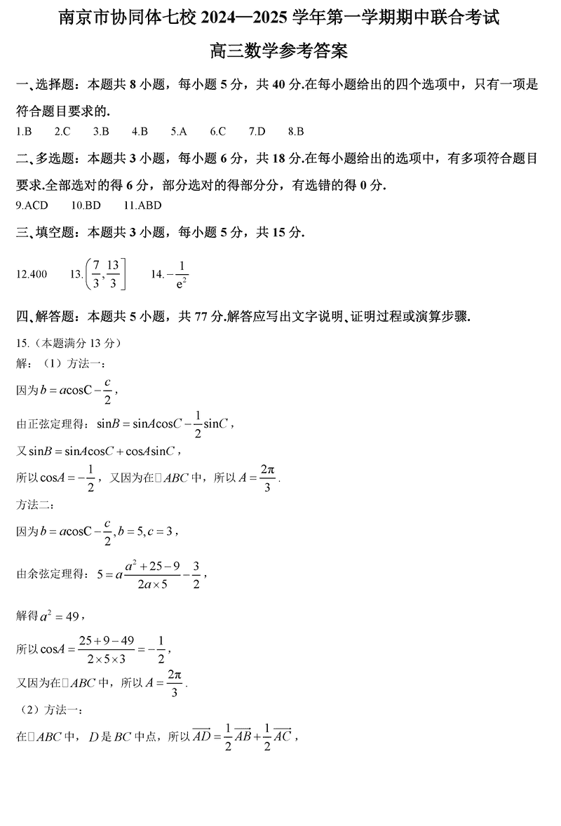 南京协同体七校2025届高三期中联考数学试题及答案 时间:2024-12-02 17:31 江苏 数学试题 南京协同体七校2025届高三期中联考数学考试已于近日开考,为方便考生考后及时查看考试情况,查漏补缺、弥补不足,本文整理了试题答案解析相关信息! 汇总:南京协同体七校2025届高三期中联考试题及答案汇总 数学试题及答案解析
