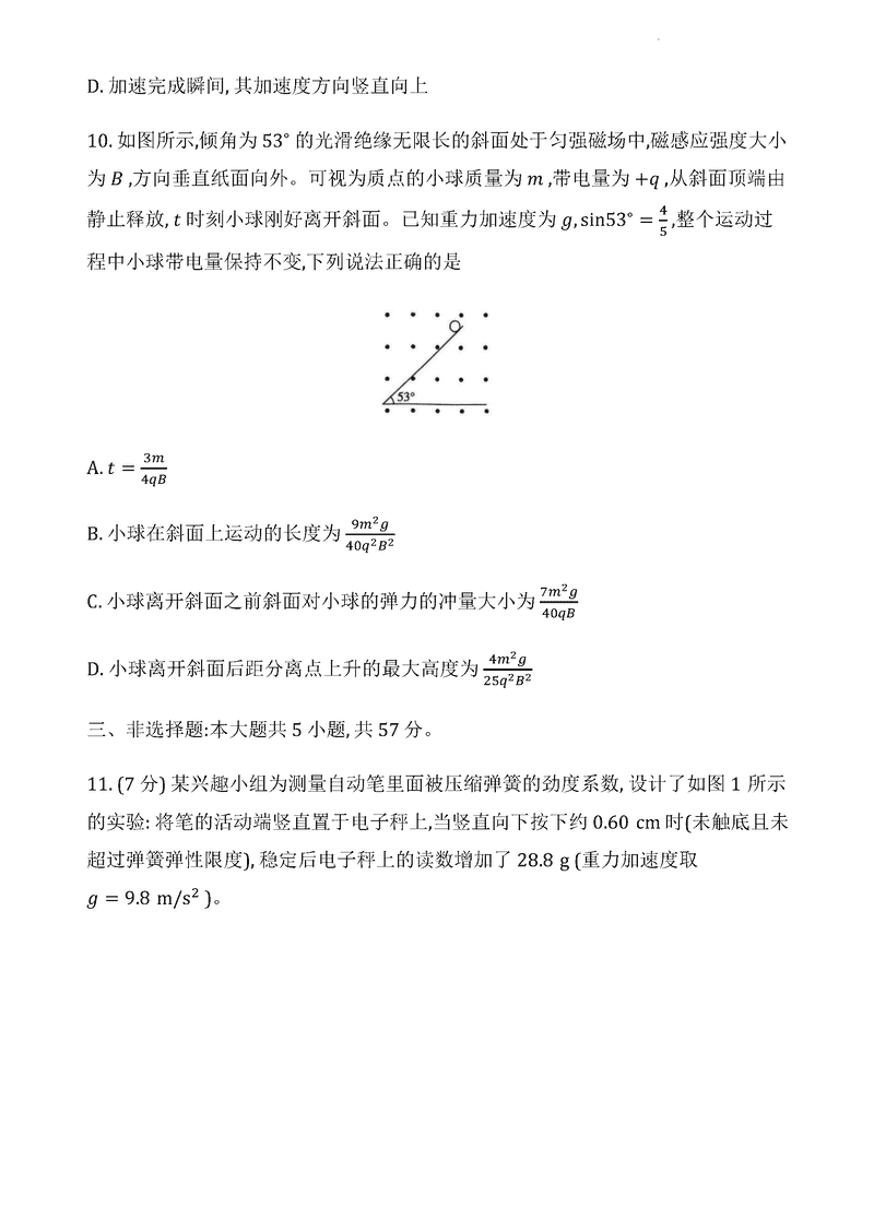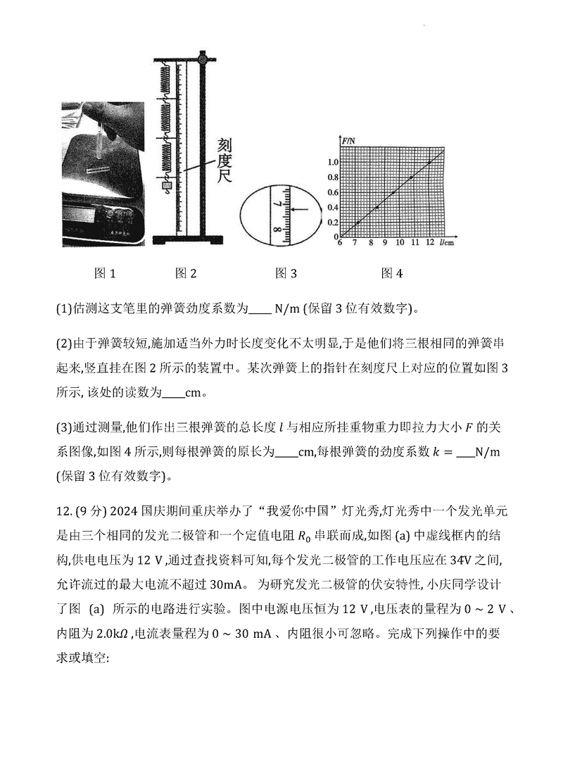 重庆一中2025届高三上学期11月期中物理试题及答案
